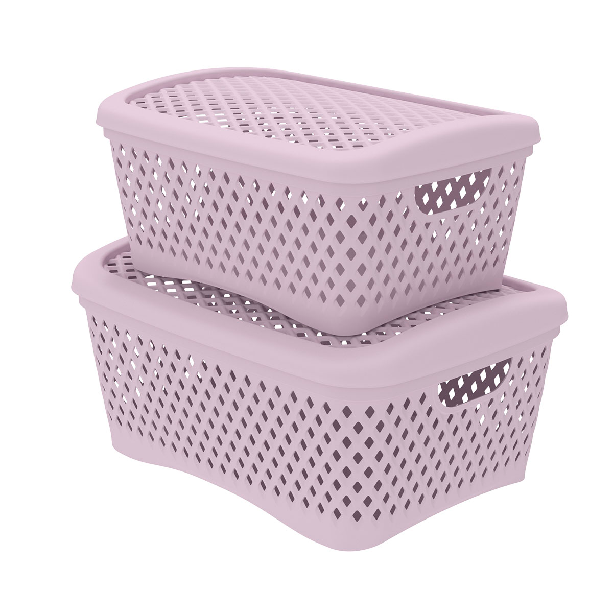 Набор корзинок Альт-Пласт "Ромбики" в цвете пепел розы состоит из двух стильных контейнеров с крышками, идеально подходящих для хранения различных вещей. Уникальный ромбовидный рисунок и нежный цвет придают корзинкам элегантный вид, который прекрасно дополнит любой интерьер.Каждая корзинка имеет крышку, что делает их более аккуратными и функциональными. Они отлично подходят для хранения игрушек, белья, канцелярии или других мелочей. Компактные размеры позволяют легко размещать корзинки на полках или в шкафах.Легкие и удобные в использовании, корзинки Альт-Пласт "Ромбики" помогут поддерживать порядок в вашем доме и добавят стильный акцент в декор.