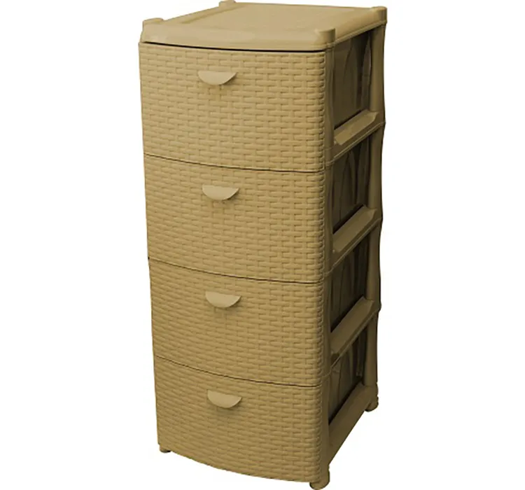Вместительный и красивый комод, стилизованный под плетеное изделие. Имеет плавные линии, без углов и зазубрин. Комод поможет разложить по местам нужные вещи.ХарактеристикиМатериал:полипропиленВысота: 960 ммШирина: 405 ммГлубина: 505 мм