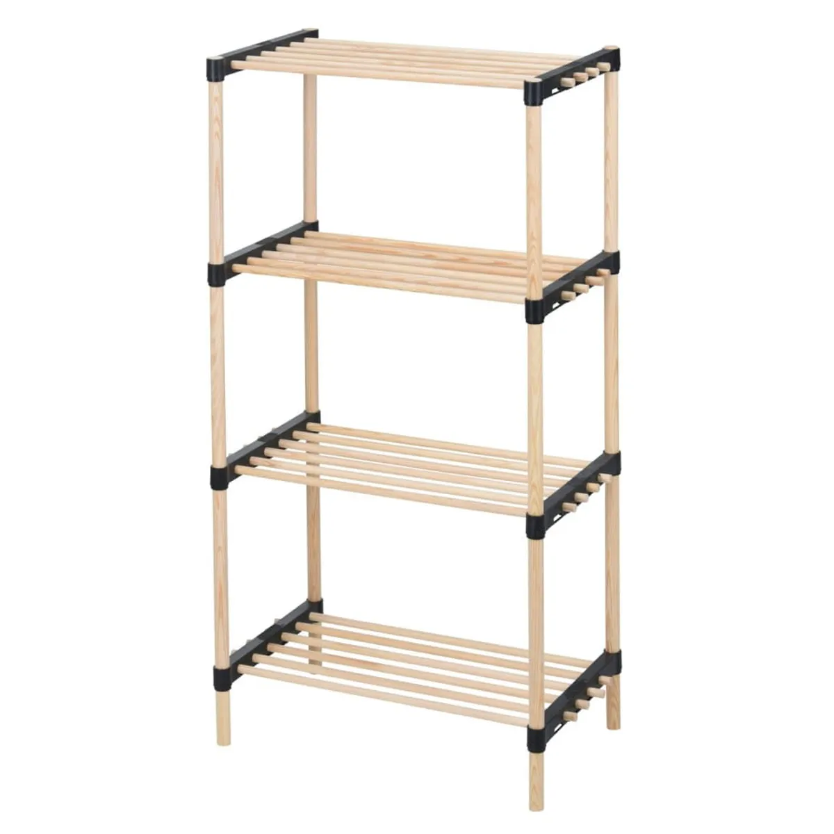 Разложите свою обувь с помощью этой подставки для обуви с 4 полками от Storage solutions!Иметь много обуви - это замечательно! Вам всегда есть из чего выбрать. Но хранить всю обувь становится все сложнее по мере увеличения вашей коллекции. С помощью этой открытой подставки для обуви вы сможете хранить свою обувь просто и стильно. Вы также сможете быстро и легко найти свою обувь, когда она вам понадобится.Органайзер для обуви имеет высоту 92,5 см и оснащен четырьмя полками для хранения обуви и других вещей.Технические характеристики :Цвет: Натуральный и черныйМатериал: СоснаРазмеры: 49 x 28 x 92,5 см (Д x Ш x В)Диаметр трубы: 11,3 мм4 полкиС боковыми рамками из полипропиленаПростота сборки
