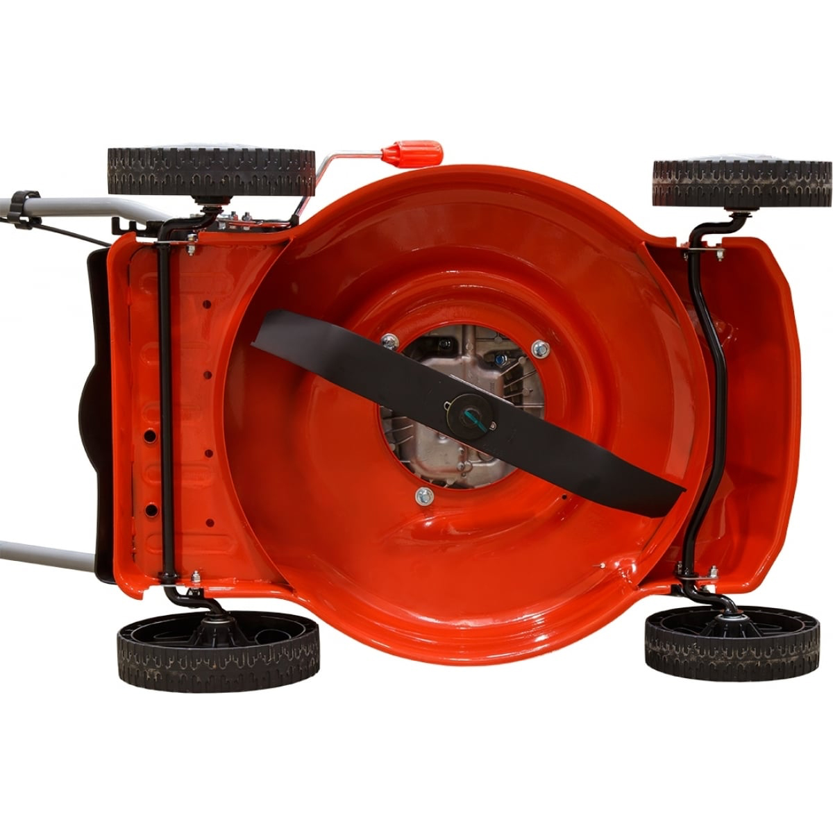 Бензиновая газонокосилка ECO LG-533 - агрегат для ухода за газоном на частном участке.Удобство использования. Регулируемая от 25 до 75 мм высота скашивания позволяет подстригать газон на любую необходимую высоту.Корпус из стали надежно защищает внутренние элементы агрегата от повреждений и внешних воздействий.Вместительный травосборник позволяет реже опорожнять его от скошенной травы.Технические характеристики ECO LG-533Самоходная: нетМодель двигателя: MX150Мощность (кВт): 2.9Мощность (л.с.): 4Мульчирование: нетШирина скашивания: 46 смОбъем двигателя: 149 см³Тип ручки: складнаяТравосборник: естьАвтозапуск: нетПлощадь: 1800 м²Кол-во режимов регулировки высоты: 7Регулировка высоты: центральнаяБольшие задние колеса: естьГабариты без упаковки: 1462 х 525 х 1100 ммВес нетто: 22.5 кгТип двигателя: бензиновыйТип травосборника: мягкий с жестким верхомВысота скашивания max: 75 ммВысота скашивания min: 25 ммМатериал корпуса: стальОбъем травосборника: 60 лЧастота вращения шпинделя: 2800 об/минВыброс травы: заднийЕмкость топливного бака: 0.8 лПривод на нож: прямойНаличие индикатора заполнения: нетКолеса: на подшипникахОбъем масляного бака: 0.4 лДиаметр колес: 178/203 ммПреимущества ECO LG-533Стальной корпус - высокая прочностьМягкая накладка на рукоятке обеспечивает удобство удержания агрегатаВысота скашивания удобно регулируется в 7 положениях при помощи рычагаНадежный двигательКолеса оснащены подшипниками для более комфортного перемещения