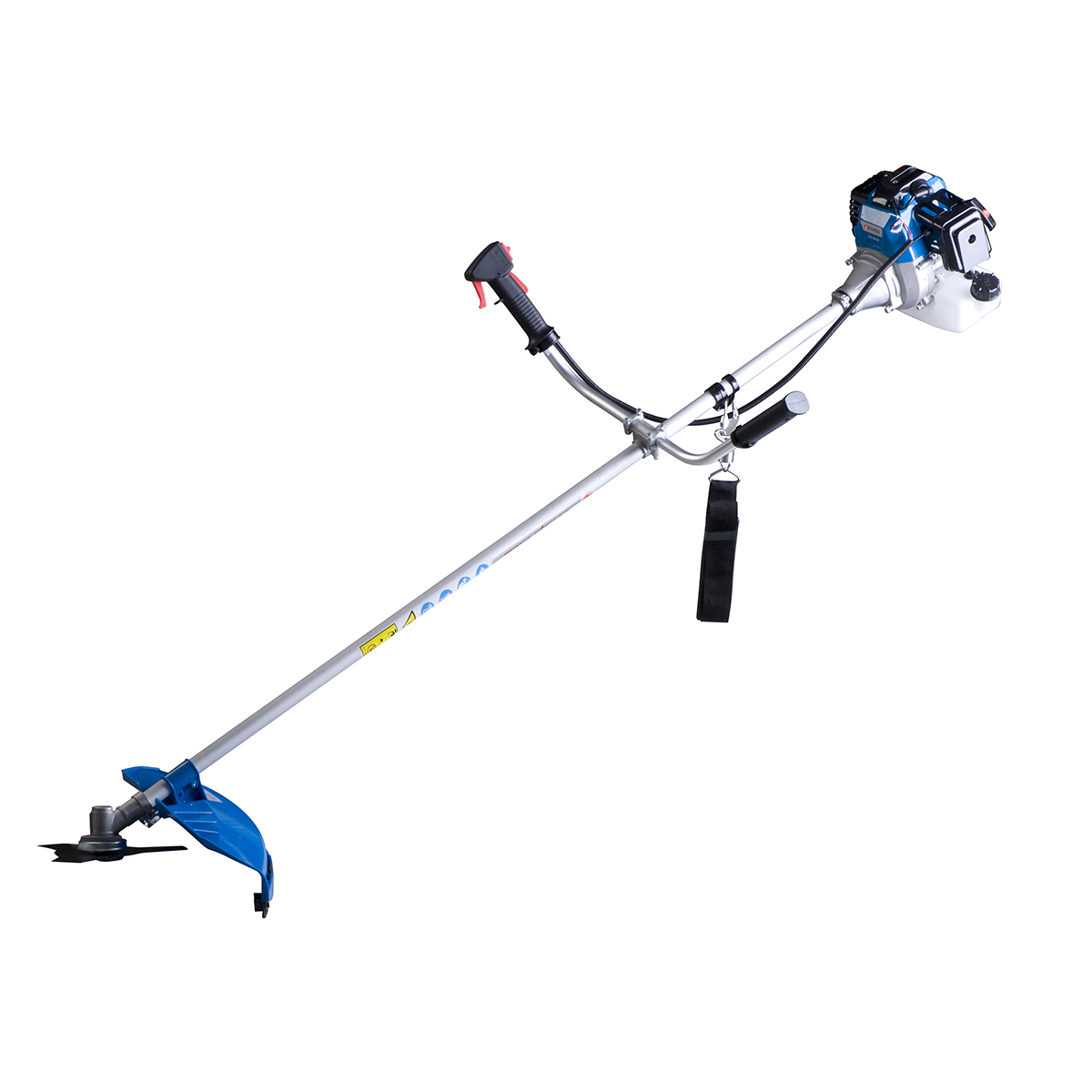 Триммер предназначен для удаления растительности, такой как трава и кусты, при помощи лески или ножа. Агрегат снабжен 2-хтактным двигателем и способен на частоту вращения 7000 оборотов в минуту. Бак вмещает 1,2 л., что обеспечит продолжительное время работы без дозаправок. Есть праймер для подкачки топлива.Преимущества модели:Расположенный в нижней части агрегата кожух предохраняет оператора от попадания листвы.U-образная "велосипедная" ручка делает удержание бензотриммера комфортным.Топливный бак сделан из прозрачного пластика, что позволяет следить за оставшимся количеством бензина.Комплектация товара:Бензиновый триммерТриммерный нож.Емкость для топлива.Шестигранный ключ 2штДвухсторонний гаечный ключ 1штБоковая рукоятка 1штДвухсторонняя отвертка 1штКатушка с нейлоновой леской 1штРемень.Характеристики:Вид топлива: топливная смесь для двухтактного двигателяОбъем двигателя (куб.см): 42,7Вид упаковки: Картонная коробкаГабариты в упаковке (ДхШхВ, см): 23x35x30Мощность двигателя, Вт: 3 000Мощность (л.с.): 4,08Тип двигателя: 2-x тактныйШирина скашивания, мм: 420Диаметр лески, мм: 2,5Тип ножа: 3 зубаЛегкий старт: ДаПраймер: ДаЕмкость топливного бака, л: 1,2Скорость холостого хода, об/мин: 7 000Вес изделия, кг: 7,84Вес нетто, кг: 7,84Вес брутто, кг: 8,16