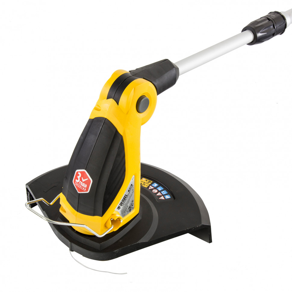 Электрический триммер Denzel предназначен для скашивания травы в садах и на дачных участках.Эффективно работает в труднодоступных местах: вдоль кромок дорожек, стен строений, а также вокруг деревьев.Высокую частоту вращения режущей головки обеспечивает электродвигатель мощностью 650 Вт.Пользователи любого роста могут настроить триммер "под себя" с помощью раздвижной телескопической рукоятки с диапазоном регулировки до 215 мм.Регулировка угла наклона штанги относительно мотора обеспечат максимальный комфорт при работе.При работе с триммером рекомендуется применять леску диаметром 1,3 мм.За один проход ширина скашивания леской составляет 33 см.Триммер оснащен катушкой-автоматом, удлинение лески происходит в момент запуска триммера.Мощность: 650 ВтНапряжение: 220 ВМаксимальный диаметр лески: 1.3 ммКрепление шпули: M6