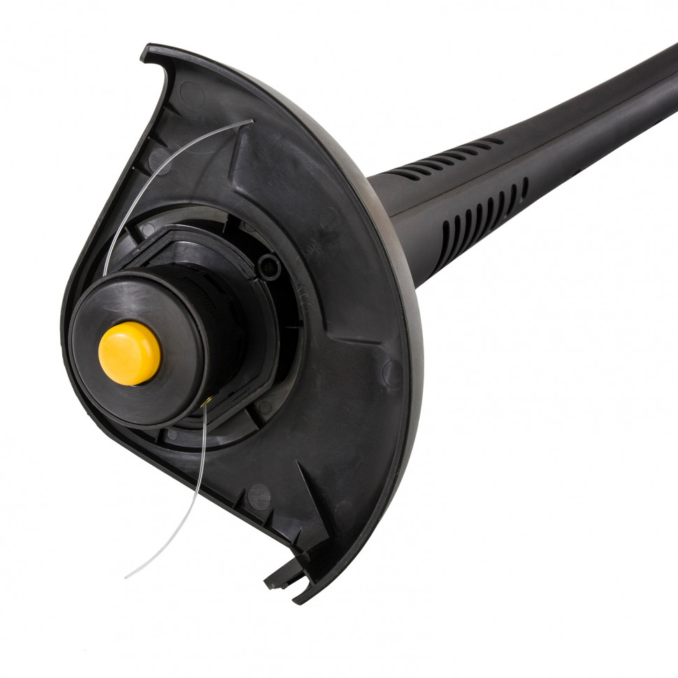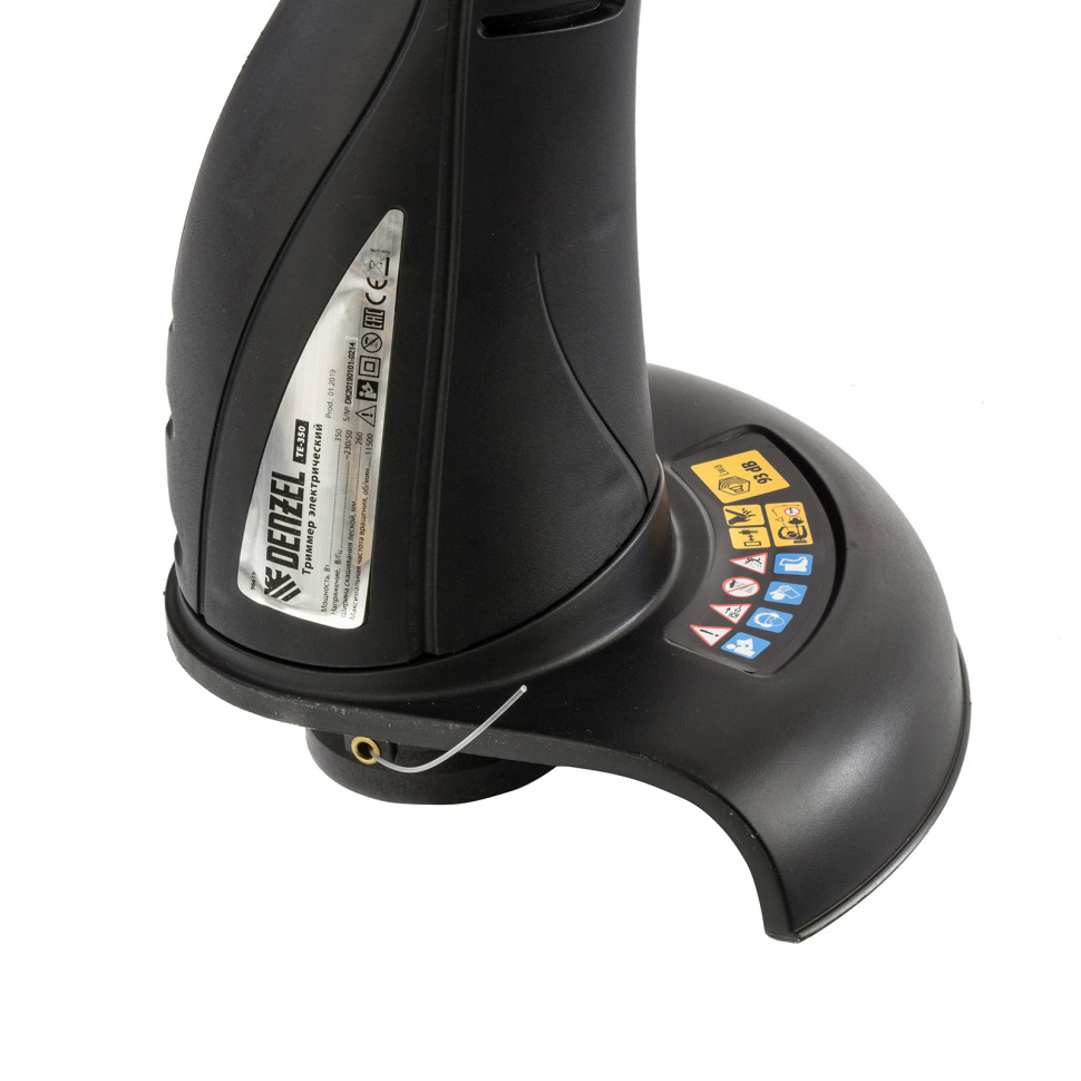 Электрический триммер Denzel предназначен для скашивания травы в садах и на дачных участках.Эффективно работает в труднодоступных местах: вдоль кромок дорожек, стен строений, а также вокруг деревьев.Легкий и удобный в эксплуатации, высокую частоту вращения режущей головки обеспечивает электродвигатель мощностью 350 Вт.При работе с триммером рекомендуется применять леску диаметром 1,3 мм.За один проход ширина скашивания леской составляет 26 см.Триммер оснащен полуавтоматической катушкой, для удлинения лески достаточно несильно ударить катушкой о землю.ХарактеристикиРасположение двигателя : нижнееМощность: 350 ВтМощность двигателя: 0.4 л.с.Максимальное число оборотов: 11500 об/минВид штанги: изогнутыйТип привода: тросикФорма ручки: T-образнаяРегулировка высоты ручки: нетШирина обработки - лески: 260 ммПитание устройства: сеть 220 ВДлина кабеля: 0.3 мУровень шума при работе: 93 дБЗащита: защитная скоба, защитный кожухОсобенности: полуавтоматическая подача лески, крепление шпульки M5Вес: 1.9 кгГабариты упакованного товара (ШхВхГ): 140 x 160 x 540 ммКрепление шпули: M5
