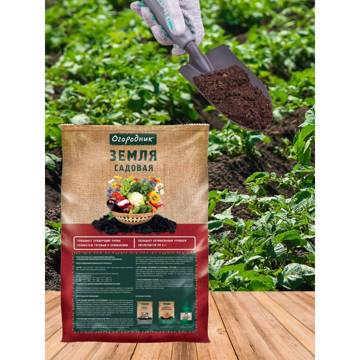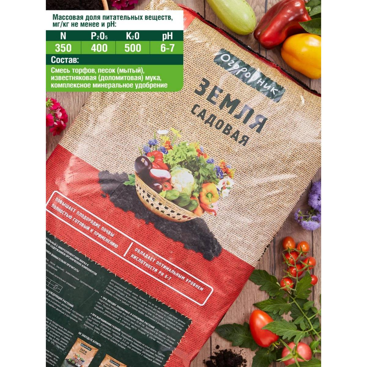Почвогрунт Огородник Садовая земля предназначен для выращивания следующих растений: посадки и пересадки плодово-ягодных и декоративных деревьев и кустарников, однолетних и многолетних цветов; луковичных и клубневых растений; посева газонов; для мульчирования приствольных кругов садовых деревьев и кустарников.Повышает плодородие почвы.Обладает оптимальным уровнем кислотности PH 6-7.Полностью готовый к применению.Состав: Торф верховой, торф низинный, песок, мука известняковая (доломитовая), комплексное минеральное удобрение.