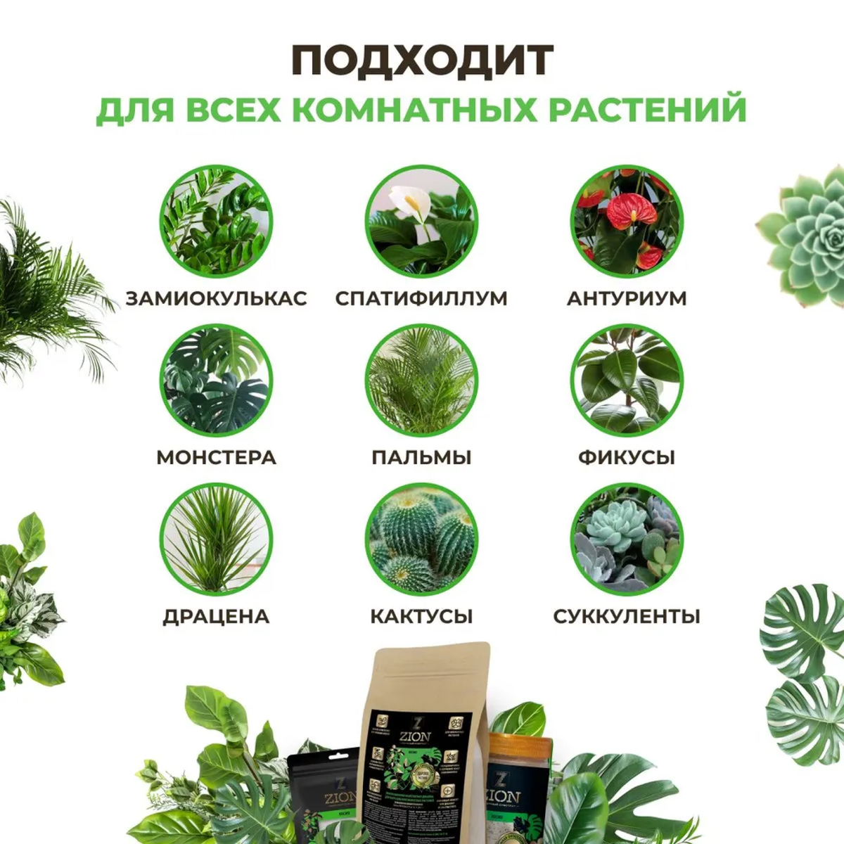 Ионитный питательный субстрат ЦИОН КОСМО создает и поддерживает оптимальные условия для гармоничного роста и полноценного развития декоративно лиственных комнатных растений. Способствует формированию сильной корневой системы, образованию новых побегов, ярких блестящих листьев, восстановлению поврежденных растений. ЦИОН может использоваться как самостоятельно, так и в виде корректирующих добавок к любой основе (посадочному грунту). Ионитный субстрат ЦИОН КОСМО может быть использован для обеспечения растения сбалансированным набором элементов питания на любом этапе его жизненного цикла. В течение периода полезного действия ЦИОНа никаких дополнительных подкормок растению не потребуется.Идеально сбалансированное питание растения на любой фазе роста без лишних хлопот.Оптимальный набор и соотношение элементов питания для лиственных и цветущих комнатных растений.Не является минеральным удобрением, не содержит фитогормонов, стимуляторов и ускорителей роста.Способствует адаптации и приживаемости растений после пересадки.Рекомендован для прямого контакта с корневой системой.Передозировка и корневой ожог невозможны.Содержит в 60 раз больше питательных элементов, чем самый плодородный грунт. Продуктивен до 3 лет.Способ применения:При посадке и пересадке комнатных растений: опудрите корневую систему растения субстратом. Смешайте ионитный субстрат ЦИОН КОСМО с грунтом в соотношении 1-2 столовые ложки на 1 литр грунта. Посадите в полученную смесь растение, уплотните землю вокруг ствола и полейте водой.Для подкормки растущих комнатных растений (высотой до 40 см): вокруг растения сделайте бороздку глубиной 3-5 см, внесите в нее ЦИОН, засыпьте бороздку имеющимся грунтом и полейте водой.Для подкормки растущих комнатных растений (высотой более 40 см): вокруг растения вращательными движениями любым острым предметом сделайте проколы грунта глубиной 10-15 см под небольшим наклоном. Внесите ЦИОН в образовавшиеся ямки, засыпьте их имеющимся грунтом и полейте водой.Расход ЦИОН КОСМО для подкормки комнатных растений зависит от размера корневой системы растения (размера горшка растения). На каждый литр корневой системы растения (горшка) вносится 1-2 столовые ложки субстрата. Например, для фиалки в 1-литровом горшке потребуется 30-60 г субстрата, а для фикуса в 7-ми литровом горшке 200-300 г субстрата.