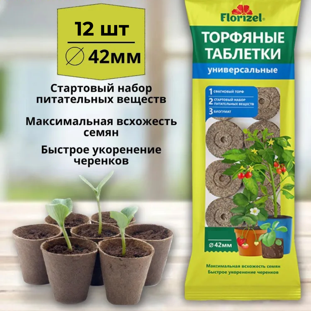 Торфяные таблетки для выращивания рассады. Обеспечивают максимальную всхожесть семян, быстрый рост рассады, отсутствие стресса при пересадке.В упаковке: 12 таблеток.Диаметр: 42 мм.