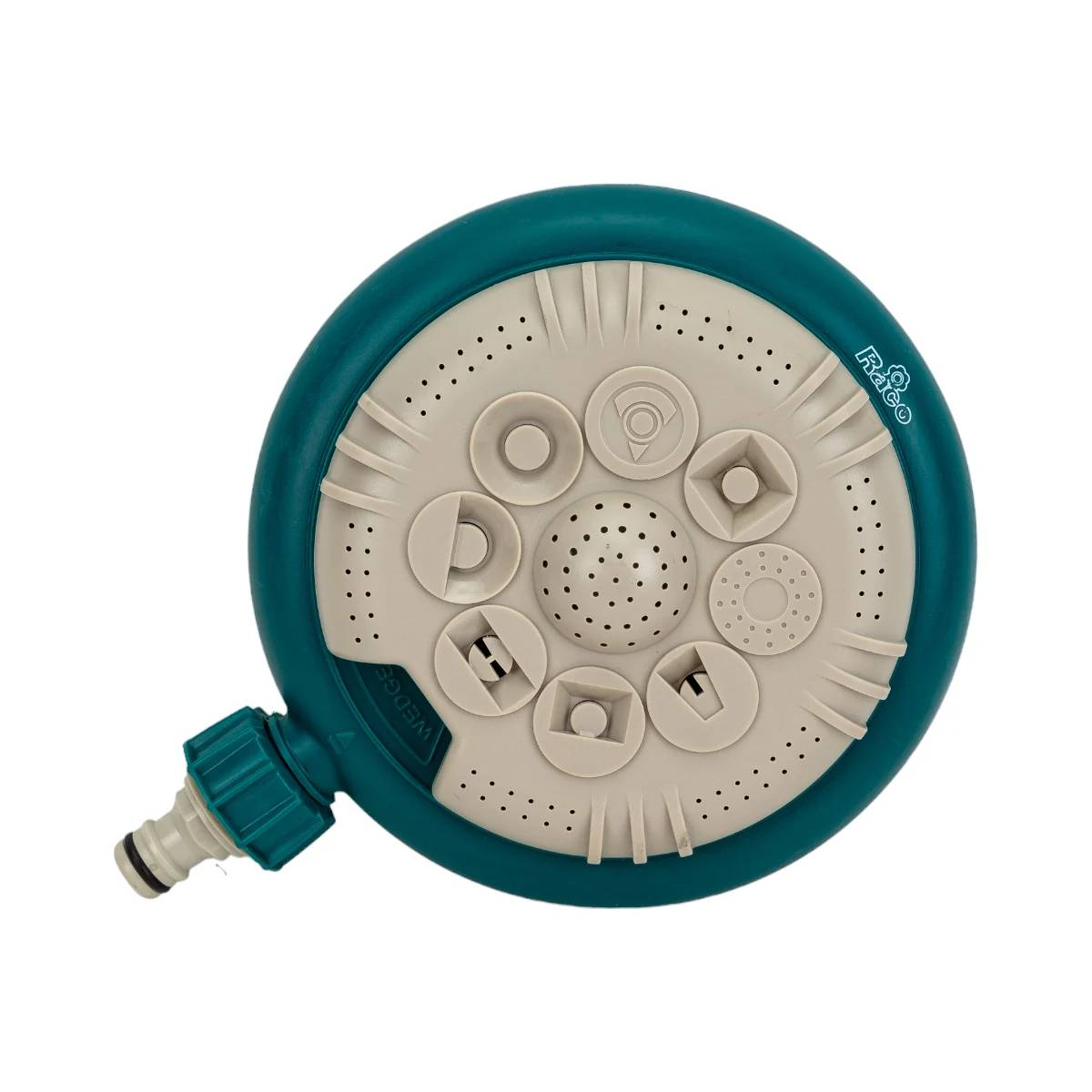Распылитель RACO МИНИ используется для полива растений на садовых участках разной формы и площади. Данная модель изготовлена из ударопрочной пластмассы и смонтирована на компактной круглой устойчивой подставке. Равномерная подача воды позволяет избежать образования луж. Изделие имеет 8 разнообразных форм отверстий:Прямоугольник;Квадрат;Полоса;Звездочка;Полузвездочка;Полный круг1/4 круга;3/4 круга.Характеристики:Установка: на подставкеТип соединителя: StandartФорма площади полива: круг+сектор+прямоугольникПлощадь: 64 м²Регулировка дальности: естьРегулировка потока: естьМатериал распылителя: пластикМатериал основания: пластикГабариты без упаковки: 250х160х65 мм