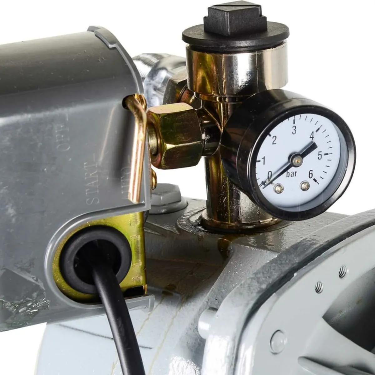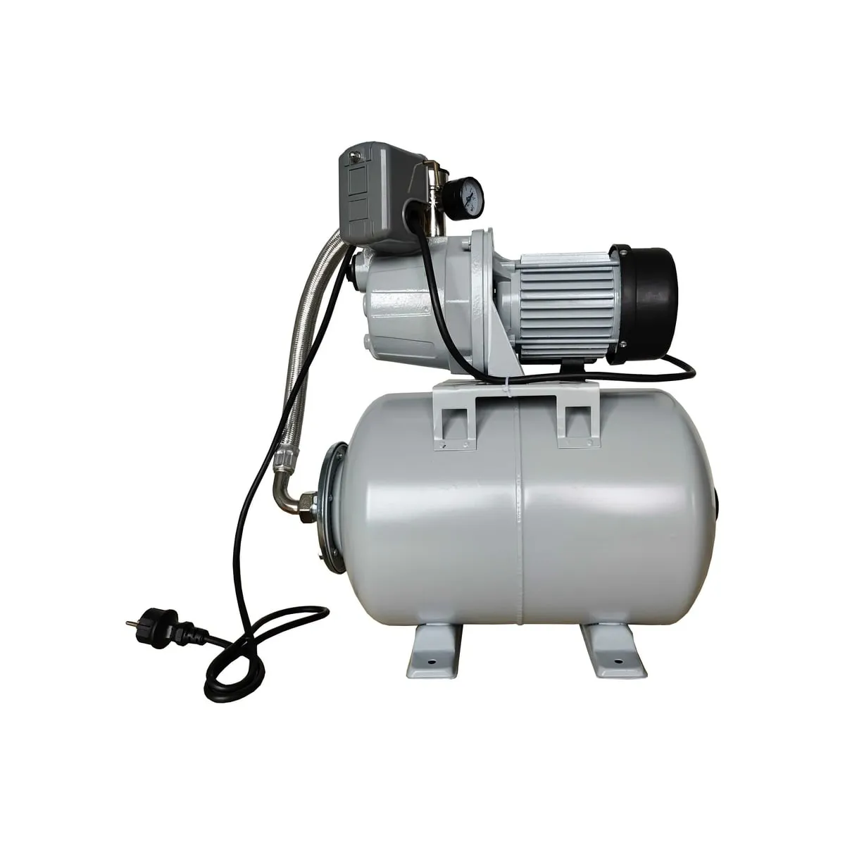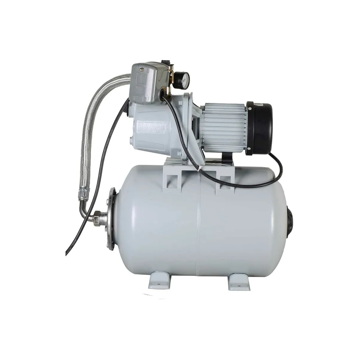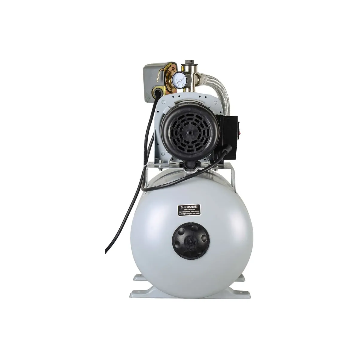 Модель оснащена гидроаккумулятором объемом 24 л. Он обеспечивает резервный запас воды, поддерживает необходимое давление в системе 1,5-3 атм и продлевает срок службы насоса. Температура транспортируемой жидкости может достигать 50° С. Максимальная глубина, с которой насос способен подавать воду, составляет 9 м. Реле защищает двигатель от сухого хода, предупреждая его выход из строя.
