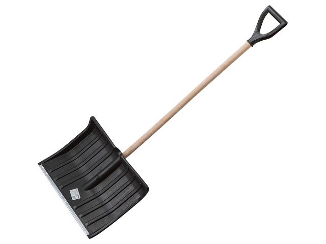 Рабочая часть выполнена из морозостойкого композиционного пластика, устойчивого к низким температурам и механическим нагрузкам. Закруглённый ковш с бортиками облегчает захват и удержание снега. Кромка из оцинкованной стали усиливает рабочую часть и защищает пластик от преждевременного износа. Деревянный черенок с эргономичной V-образной рукояткой обеспечивает удобный и надёжный хват во время работы.