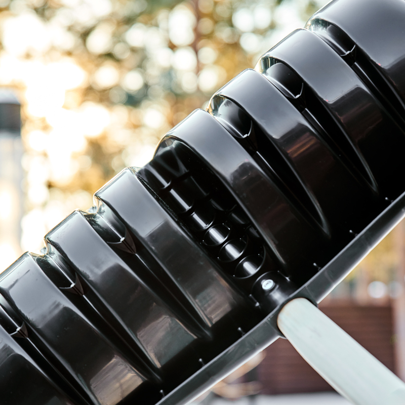 – Металлическая планка усиливает рабочую кромку, позволяя эффективно срезать и сдвигать снег