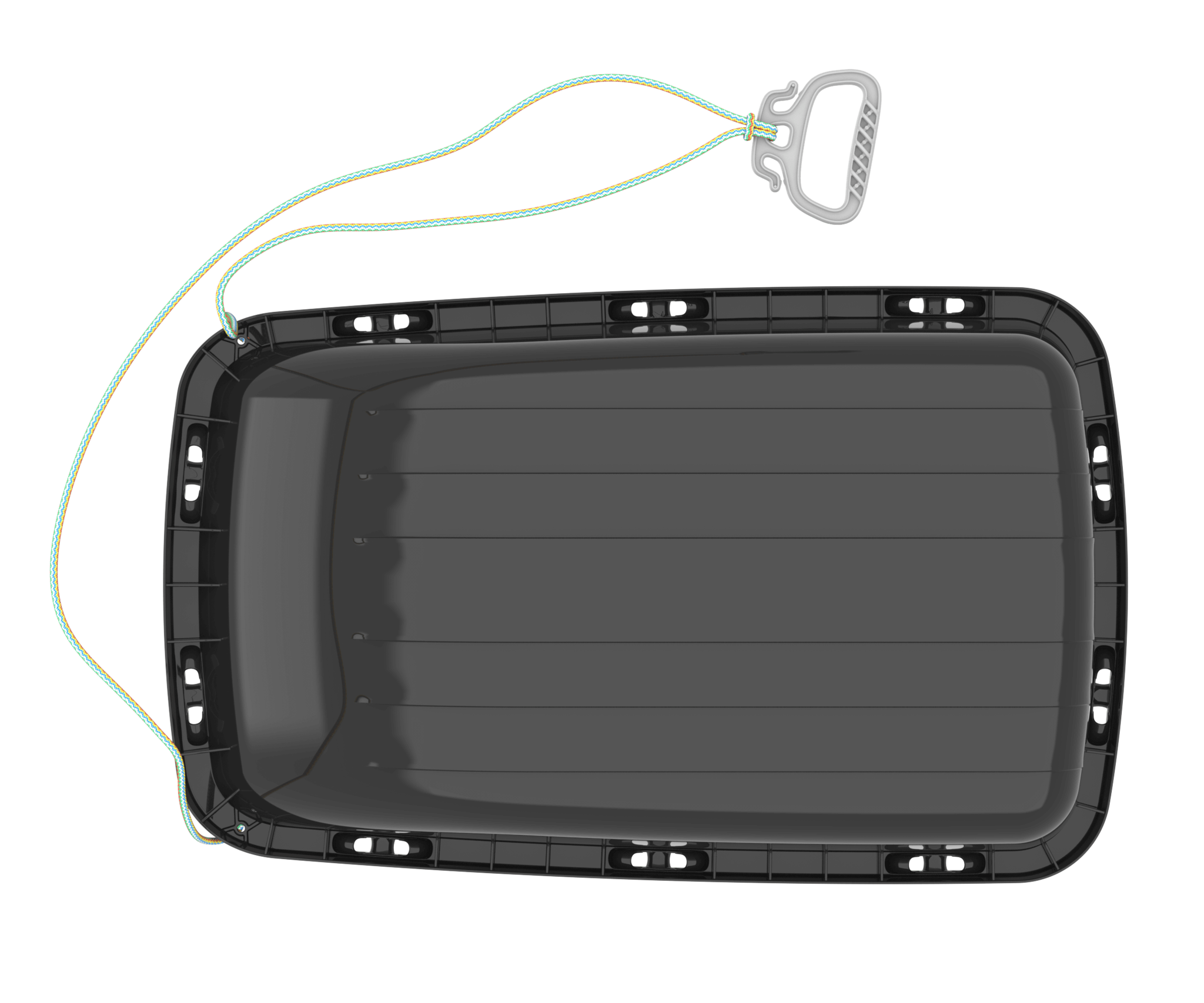 Особенности: полозья для устойчивого скольжения, отверстия для крепления карабинов, возможность сцепки нескольких саней, морозостойкие и прочные стенки