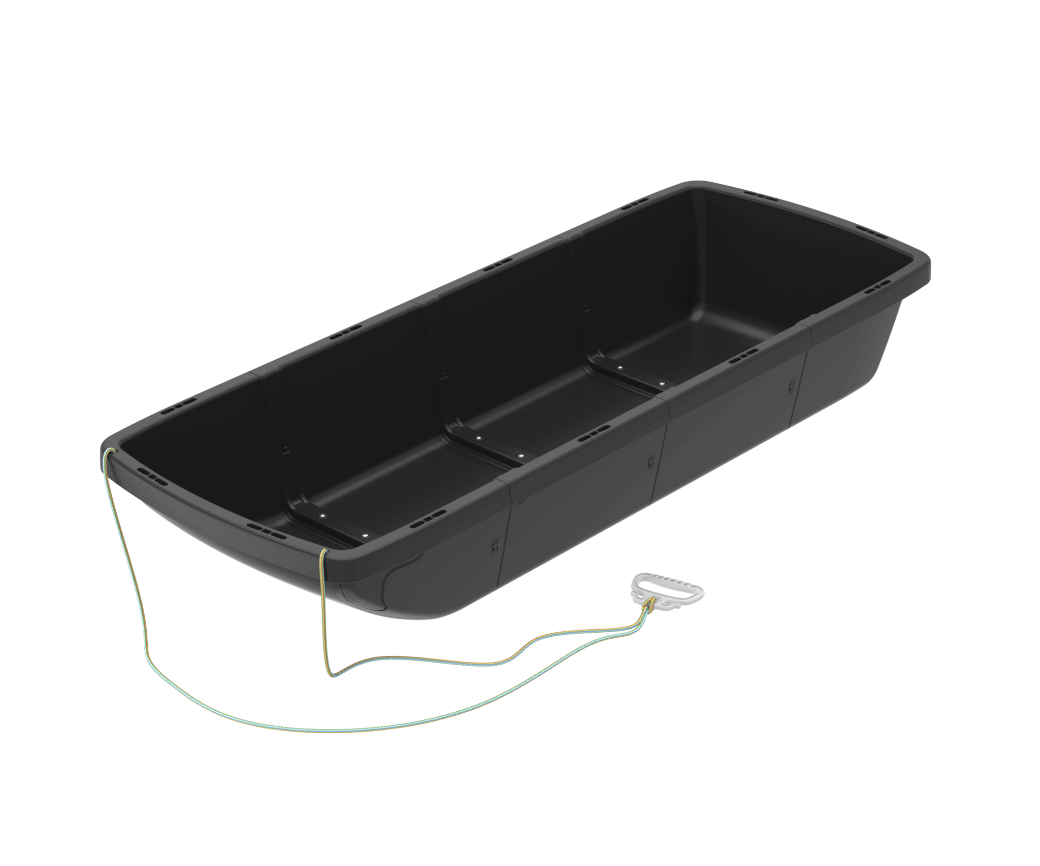 Модель состоит из четырёх сегментов, что позволяет получить компактные санки для более лёгких грузов и удобного хранения. Сборка и разборка занимает около 10 минут, что делает их практичными для транспортировки в багажнике автомобиля или на снегоходе. На дне волокуш расположены полозья для устойчивого скольжения, а по периметру предусмотрены отверстия для крепления карабинов и защиты груза от осадков.