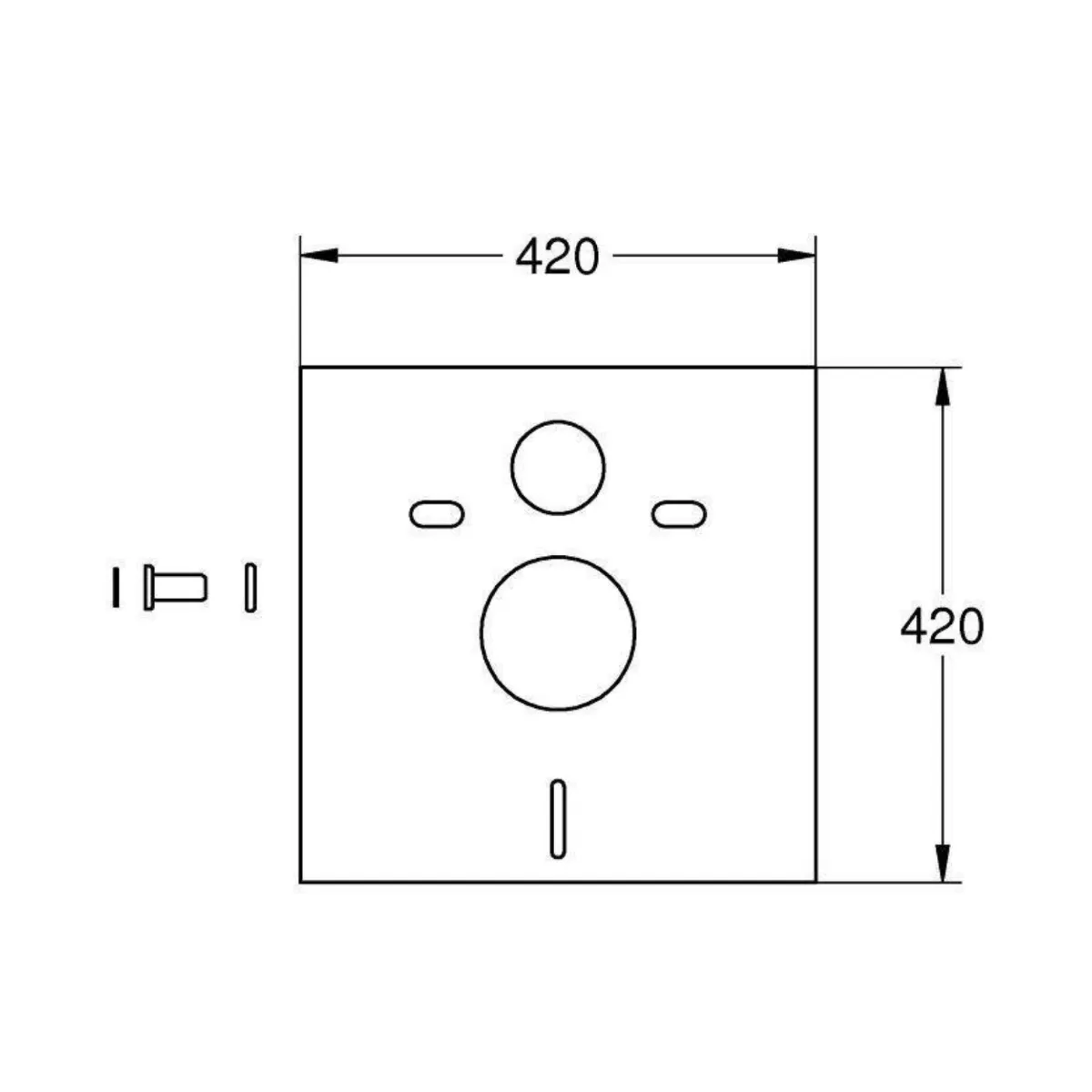 Звукоизоляционный комплект для инсталляций Grohe состоит из пластикового квадратного листа (0,42х0,42 м) с монтажными отверстиями и двух резиновых втулок с прокладками. Устанавливается на перегородку, скрывающую инсталляцию, перед креплением подвесного унитаза. Предназначен для снижения шума от сливаемой с бачка воды.Характеристики:Назначение: для унитазаРазмер: 42 х 40 смТолщина: 5 мм.
