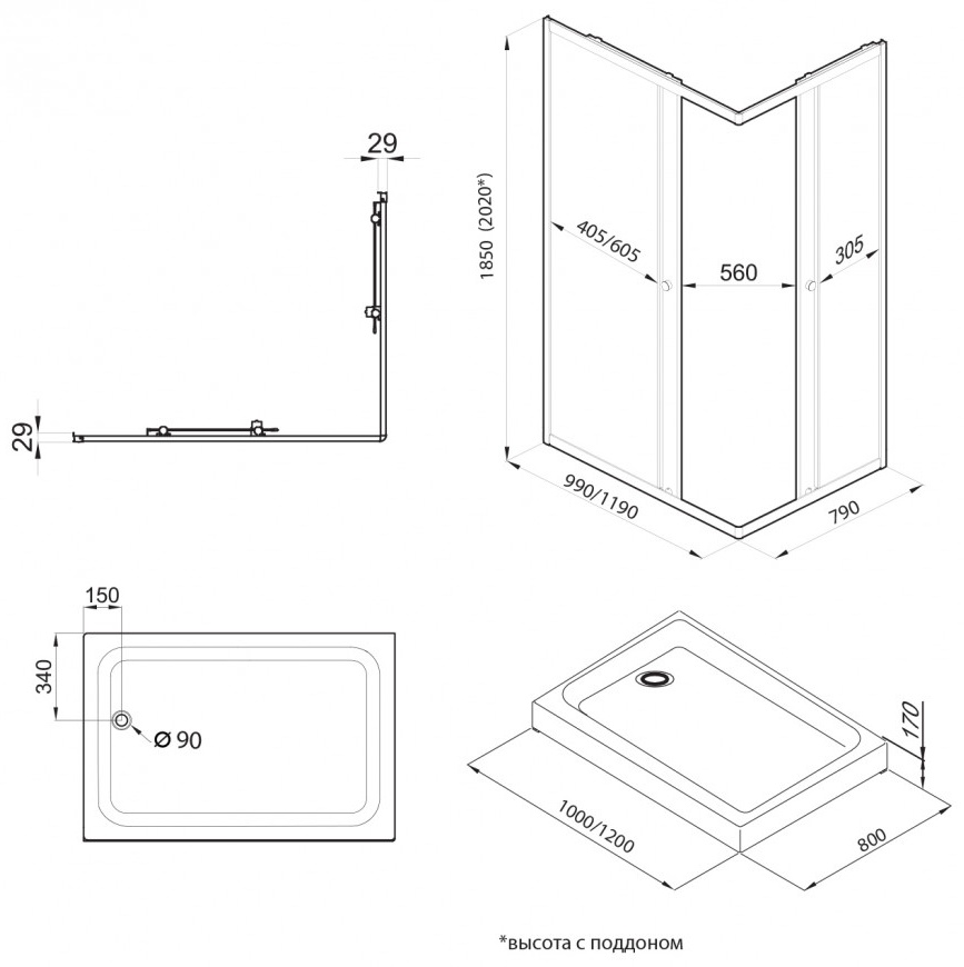 Готовый комплект — поддон и сифон уже включены