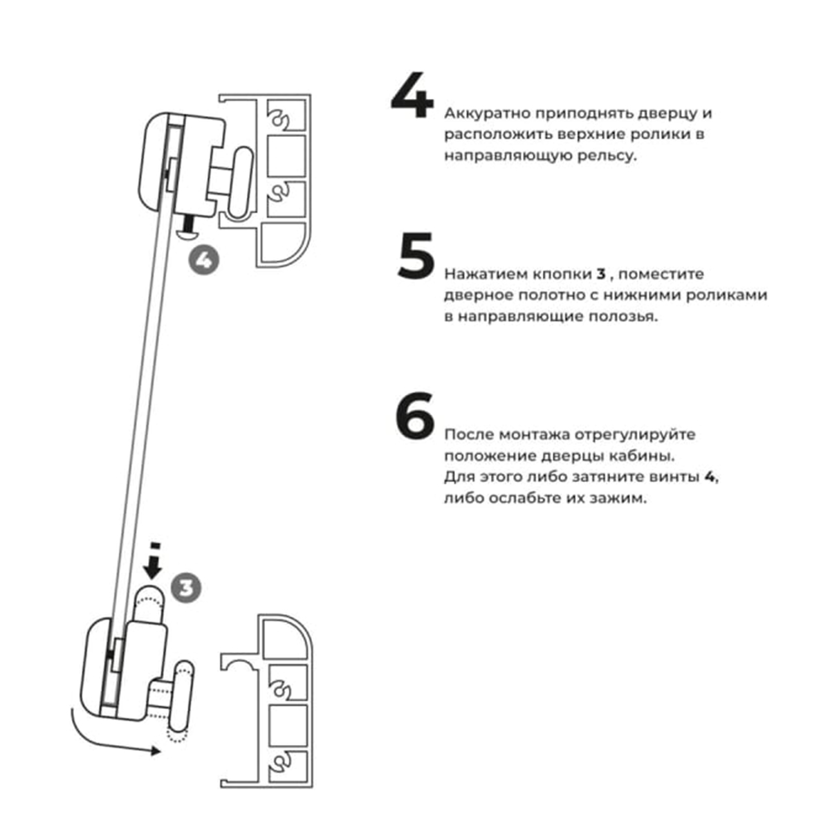 Комплект сменных натяжных роликов для душевой кабины. Два одинарных подвесных (верхних) ролика с регулировочным винтом по высоте и два одинарных подпружиненных нижних ролика. Вынос от центра ролика до центра стекла 20 мм. Высота от края стекла до центра отверстия 20 мм. ХарактеристикиМатериал: пластикДиаметр ролика, мм: 23Диаметр отверстия, мм: 10Толщина стекла, мм: 4-6