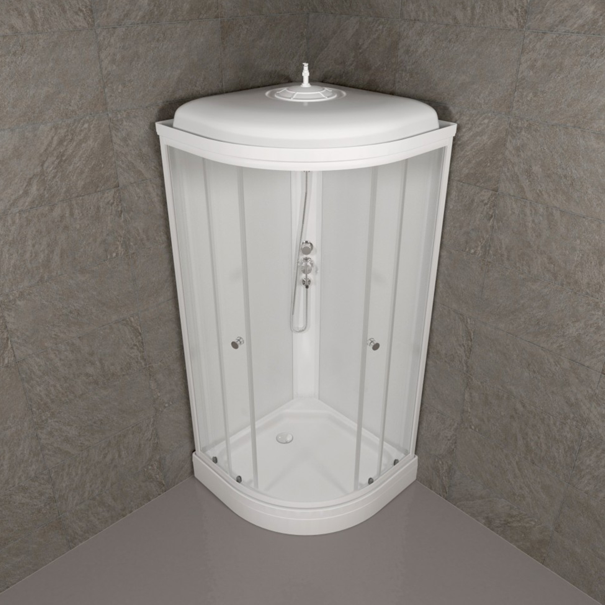 Длина: 880 ммШирина: 880 ммВысота: 2175 ммФорма: полукругТип поддона: низкийВысота поддона: 170 ммВысота экрана: 130 ммГлубина: 65 ммСифон душевой кабины: 50 ммШирина дверного проёма: 490 ммТолщина стекла: 4 ммРисунок стекол: без рисункаКоличество дверей: 2 штРадиус: 556 ммЦвет профиля: белыйМатериал профиля: алюминийКонструкция дверей: раздвижнаяМеханизм открытия дверей: ролики скольженияМаксимальная нагрузка: 350 кгСостав поставки :Комплект передних стёколКомплект задних стёколКомплект направляющихПоддон душевой со съёмным экраномКаркас для поддона стальнойЦентральная душевая панель (Стойка)КрышаСмеситель с лейкой и тропическим дождемСифон (без гофры)