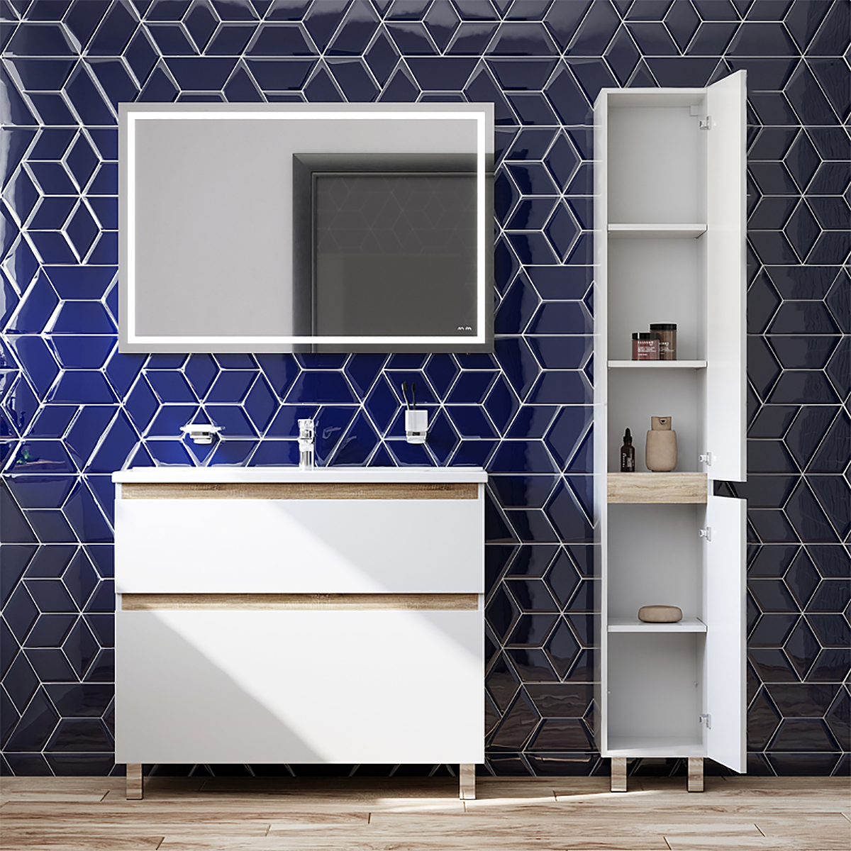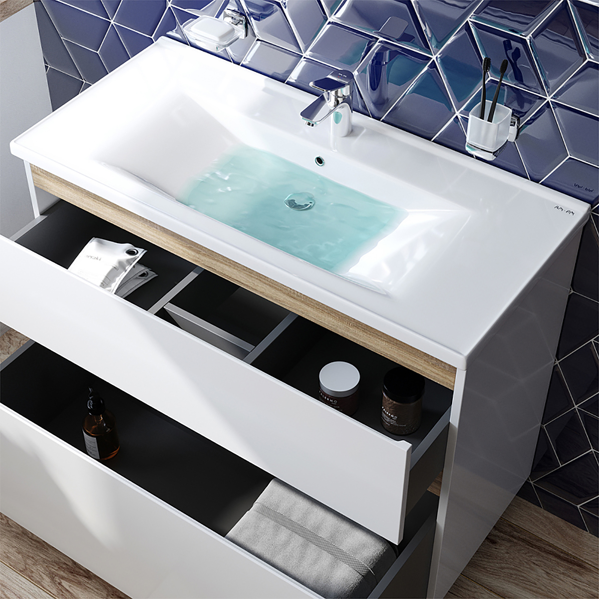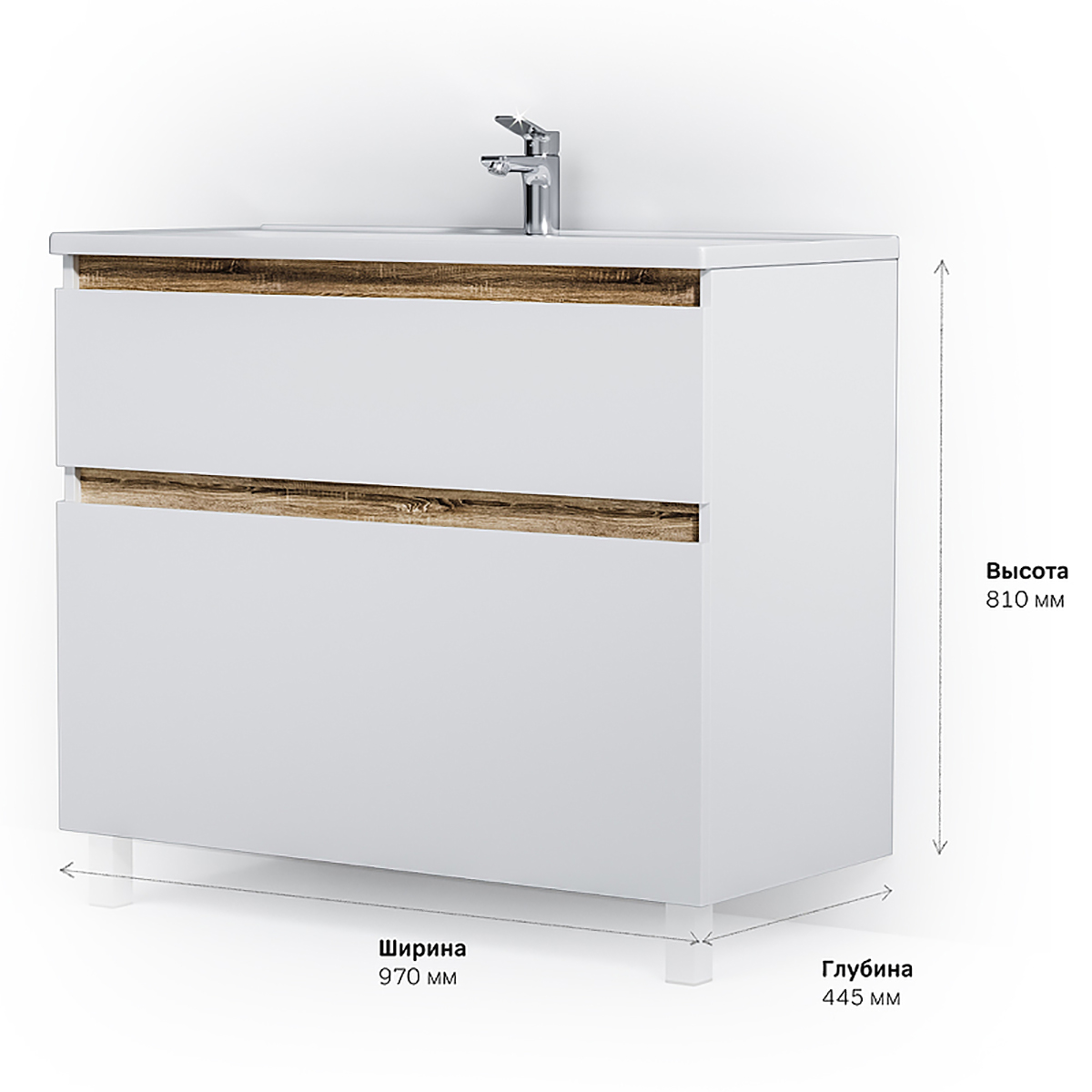Впервые на рынке – дизайнерская коллекция сантехники, которую может позволит себе каждый. Самое эстетичное сочетание цветов и фактур от дизайн-бюро Danelon Meroni (Великобритания & Италия): белые глянцевые фасады дополнены отделкой под светлое дерево.Функциональный органайзер в первом ящике позволит хранить необходимые косметические средства под рукой и в полном порядке. Внутреннее покрытие каждого ящика выполнено в современном цвете Anthracite и имеет противоскользящее покрытие. Встроенная керамическая раковина белоснежного цвета оснащена специальным бортиком для защиты от пролива воды за мебель.Экологически чистые и удивительно долговечные полиакриловые эмали – специальная технология покраски в 7 слоев превосходит технологию нанесения автоэмали у ведущих немецких марок и обеспечивает насыщенный цвет в течение всего срока службы (от 10 лет).Боковины базы выполнены из влагостойкой ЛДСП, что позволяет продлевать срок службы мебели до максимального в индустрии.Размер: Ширина: 97 см; Глубина: 45 см; Высота: 81 см.Внимание: умывальник приобретается отдельно!