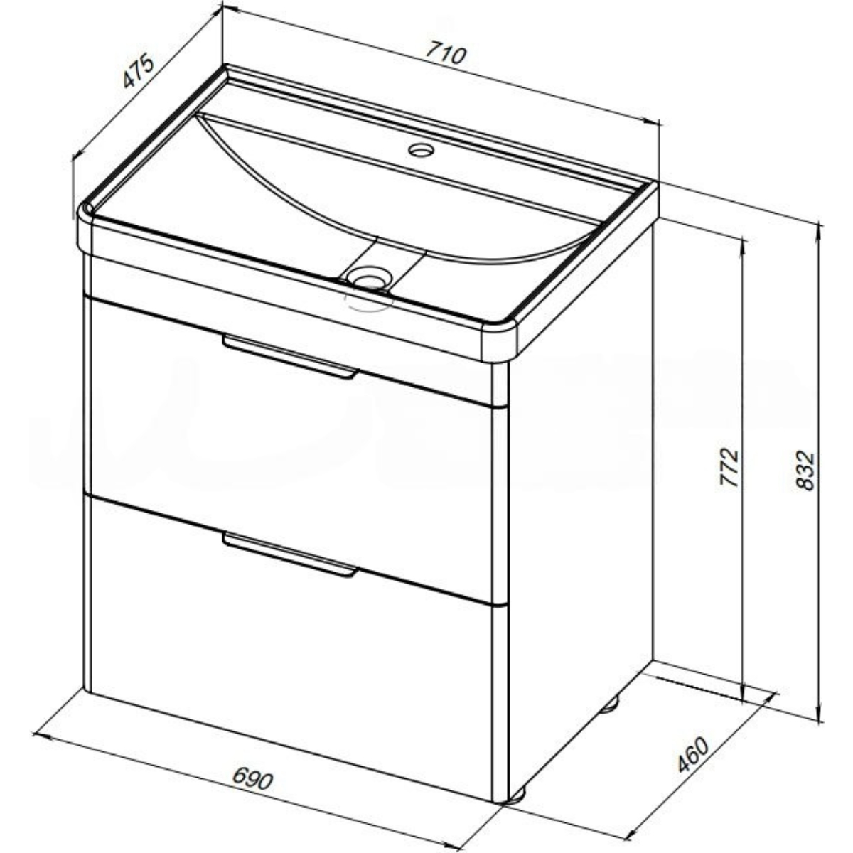Модель Ирис 70 выполнена в белом цвете - настоящее дизайнерское решение, идеально дополнит интерьер Вашей ванной комнаты. Высокое качество исполнения, эксклюзивный дизайн и выгодная цена - вот основные преимущества мебели AQUANET. AQUANET – мебель для ванной комнаты, которая наполнит пространство Вашего дома комфортом, уютом и функциональностью. Фурнитура покрывается надежным антикоррозионным составом, что позволяет использовать мебель для ванной в условиях повышенной влажности.Характеристики:Цвет: белый глянец.Материал корпус: ВЛДСП.Покрытие: эмаль.Система хранения: два выдвижных ящика.Оснащение: механизм доводчиков.Размеры корпуса тумбы (ШxВxГ): 690 х 772 х 460 мм.Монтаж: напольный.Внимание! Умывальник приобретается отдельно.
