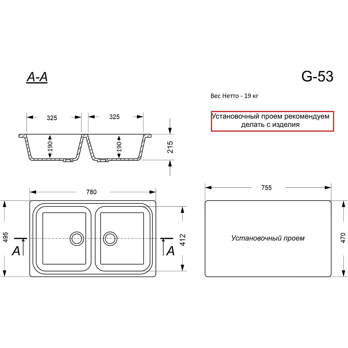 Кухонные мойки GranAlliance это не только стильный продукт идеально вписывающийся в интерьер, но и высокотехнологичное и высококачественное изделие, у которого есть неоспоримые преимущества:У каменных моек красивые цвета и фактуры (можно подобрать точно под цвет столешницы) и стильный дизайн, они выглядят благороднее стали и гармонично впишутся в интерьер любой кухни. Особенно если это современная классика, кантри или прованс.По сравнению с нержавейкой, такие мойки абсолютно бесшумные - вас не будут раздражать шум воды и лязг столовых приборов о стальную поверхность.Они глубже штампованных моек из стали.Разводы и брызги на поверхности камня практически не заметны, на металле же видна каждая капелька.И наконец, каменные мойки от GranAlliance просто приятные на ощупь!Общий размер 780х495х215 мм (ДхШхВ)Размер чаш 325х412х215 мм (ДхШхВ)Глубина чаш: 190 ммУстановочный проем 755х470.