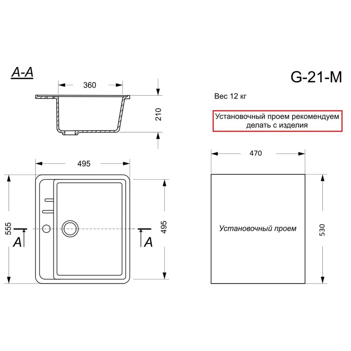 Продукция из литьевого камня соответствует ГОСТ 15167-93 и изготовлена из современных экологически чистых материалов, состоящих из природного молотого мрамора (80%) и полимерных связующих (20%), с добавлением специальных пигментов. Рабочая поверхность изделия покрыта декоративно-защитным слоем (гелькоут). Данное покрытие придает кухонной мойки красивый вид и надежно защищает от различных воздействий. Мойка с таким покрытием не впитывает грязь, жир и различные красители.Характеристики:Способ установки: Классический врезнойФорма: ПрямоугольнаяКоличество чаш: ОднаОбщий размер: 555х495 ммРазмер чаши: 495х360х210 ммУстановочный проём: 530х470 мм