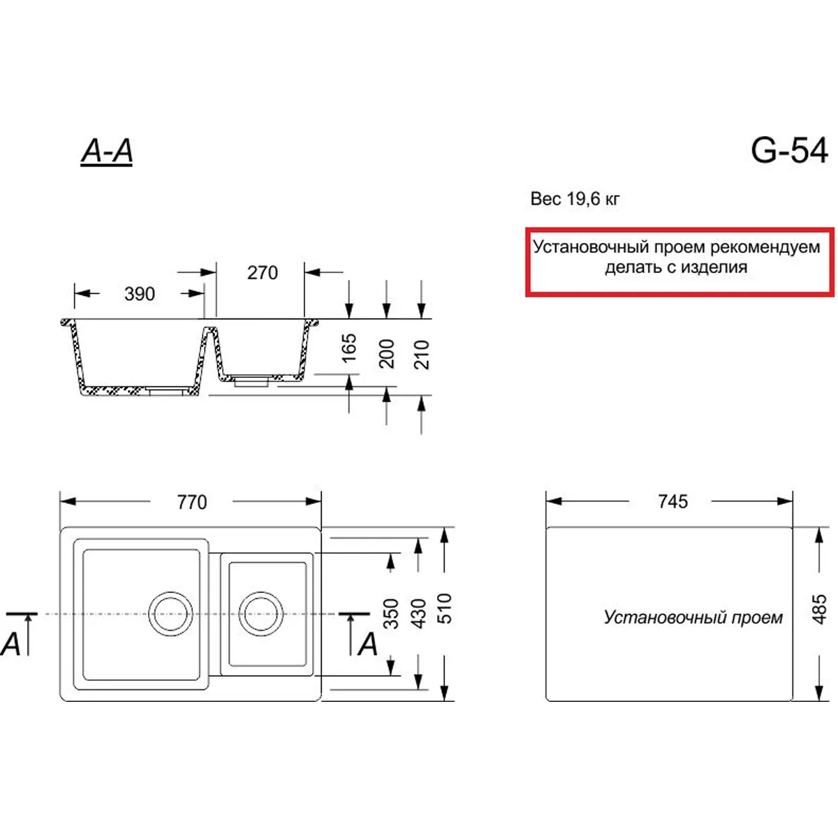 Кухонная мойка из искусственного камня G-54 Российского производства, при изготовлении моек применяются исключительно экологически чистые и безопасные материалы. Высокотехнологичный процесс изготовления моек с применением самых передовых технологий делает срок службы бесконечно долгим, а изделия высококачественными и прочными.Характеристики:Способ установки: Классический врезнойФорма: ПрямоугольнаяКоличество чаш: ДвеОбщий размер: 770х510 ммРазмер большой чаши: 430х390х200 ммРазмер малой чаши: 350х270х165 ммУстановочный проём: 745х485 мм