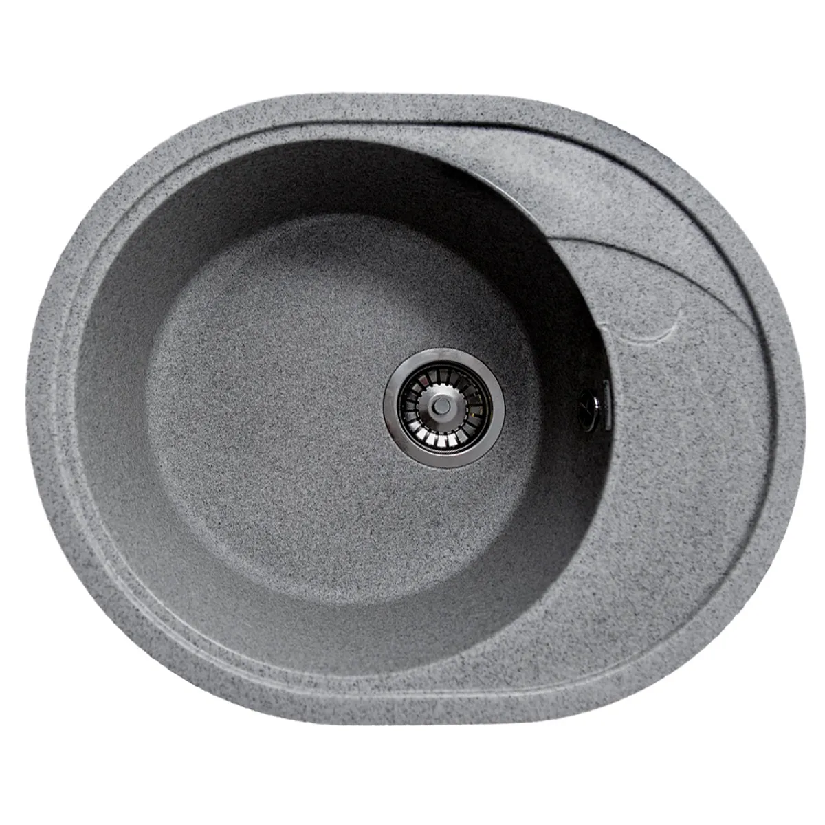 Продукция из литьевого камня соответствует ГОСТ 15167-93 и изготовлена из современных экологически чистых материалов, состоящих из природного молотого мрамора (80%) и полимерных связующих (20%), с добавлением специальных пигментов. Рабочая поверхность изделия покрыта декоративно-защитным слоем (гелькоут). Данное покрытие придает кухонной мойки красивый вид и надежно защищает от различных воздействий. Мойка с таким покрытием не впитывает грязь, жир и различные красители. Характеристики :Способ установки: Классический врезнойФорма: ОвальнаяКоличество чаш: ОднаОбщий размер: 575 х 465 ммРазмер чаши: 390 х 200 ммУстановочный проём: 550 х 445 мм