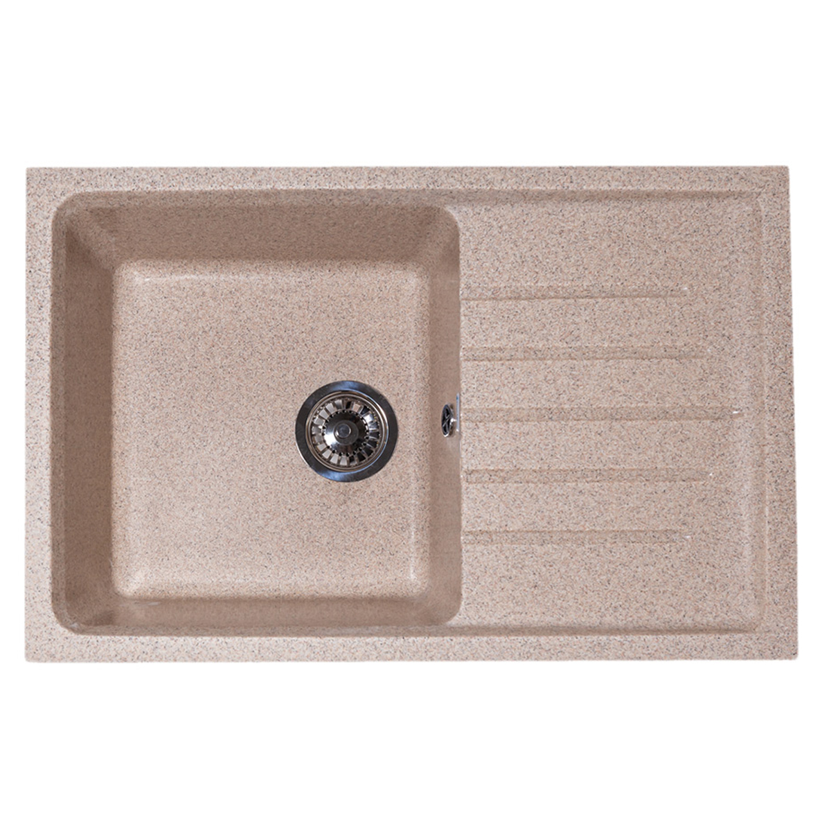 Продукция из литьевого камня соответствует ГОСТ 15167-93 и изготовлена из современных экологически чистых материалов, состоящих из природного молотого мрамора (80%) и полимерных связующих (20%), с добавлением специальных пигментов.Рабочая поверхность изделия покрыта декоративно-защитным слоем (гелькоут). Данное покрытие придает кухонной мойки красивый вид и надежно защищает от различных воздействий. Мойка с таким покрытием не впитывает грязь, жир и различные красители.Характеристики:Общий размер: 734х483 ммРазмер чаши: 425х385х210 ммУстановочный проём: 709х458 мм