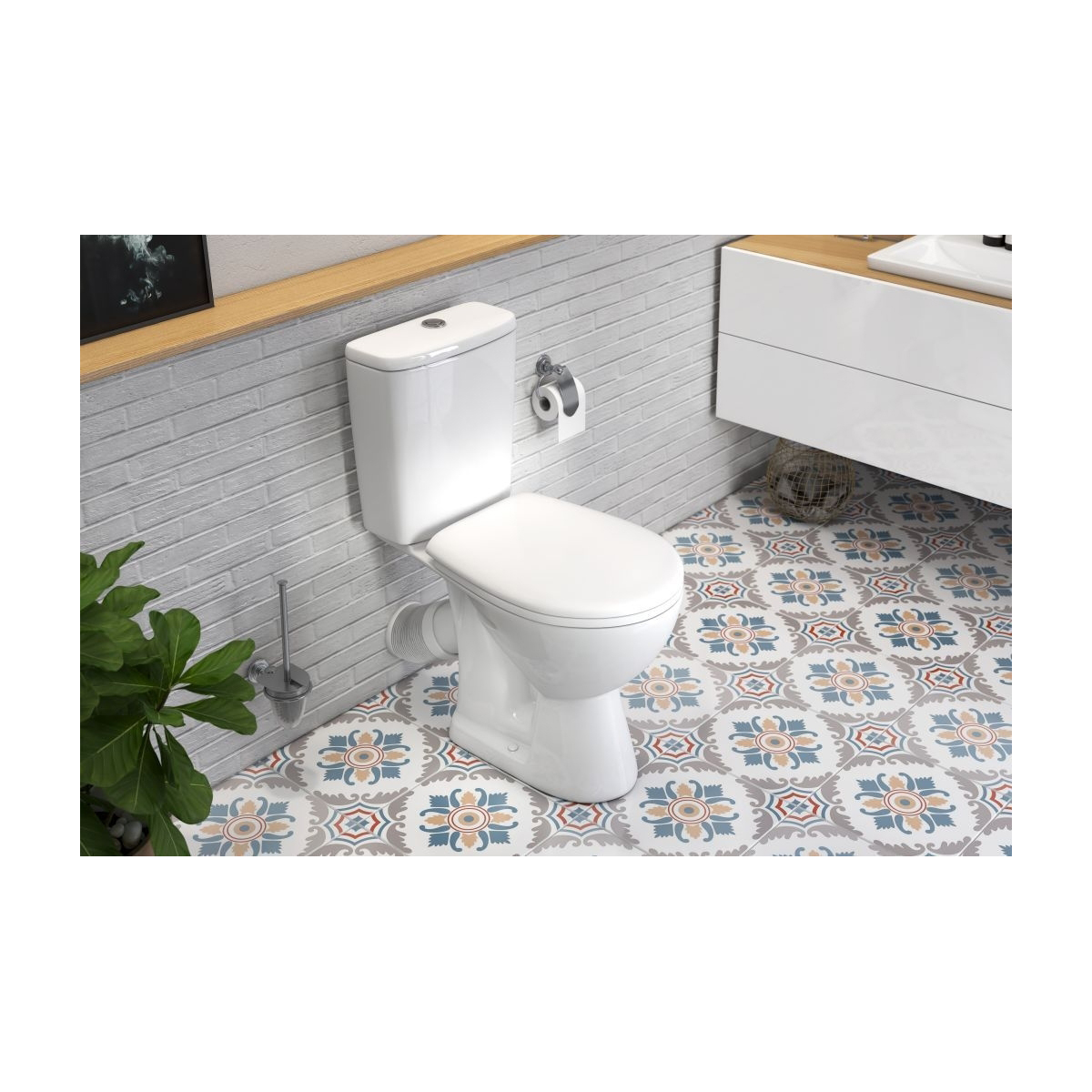 Санитарный фарфор, из которого выполнен унитаз-компакт, прост в уходе, что позволяет без труда поддерживать важную для маленького владельца чистоту. Система антивсплеск и антибактериальное покрытие сиденья с функцией плавного закрытия создает ощущение комфорта. Двухрежимная арматура 3/6 л обеспечивает экономный расход воды.Материал: санфарфорПодвод воды: снизу