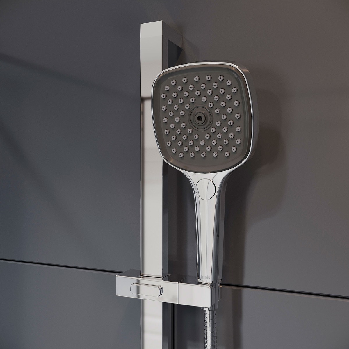 Стильное и инновационное решение для душевой зоны – лейка из коллекции Slide. Центральная форсунка этой модели работает в режиме точечного массажа: интенсивно и сильно. Благодаря своему строению и функции самоочищения Cyclone она легко пропускает водяной вихрь, убирающий даже мельчайшие загрязнения. Душевую лейку, оснащенную функцией Cyclone, не придется разбирать, чтобы почистить. Три микроотверстия в остальных форсунках лейки Slide позволяют добиться одновременно объемного и мягкого потока воды. Получите максимум удовольствия от эффекта настоящего СПА при любом режиме работы лейки.Поверхность диска лейки: ABS-пластикРасход воды (л./мин.): 9,4 / 7,8 / 13Размер изделия, мм.: 257х120х61