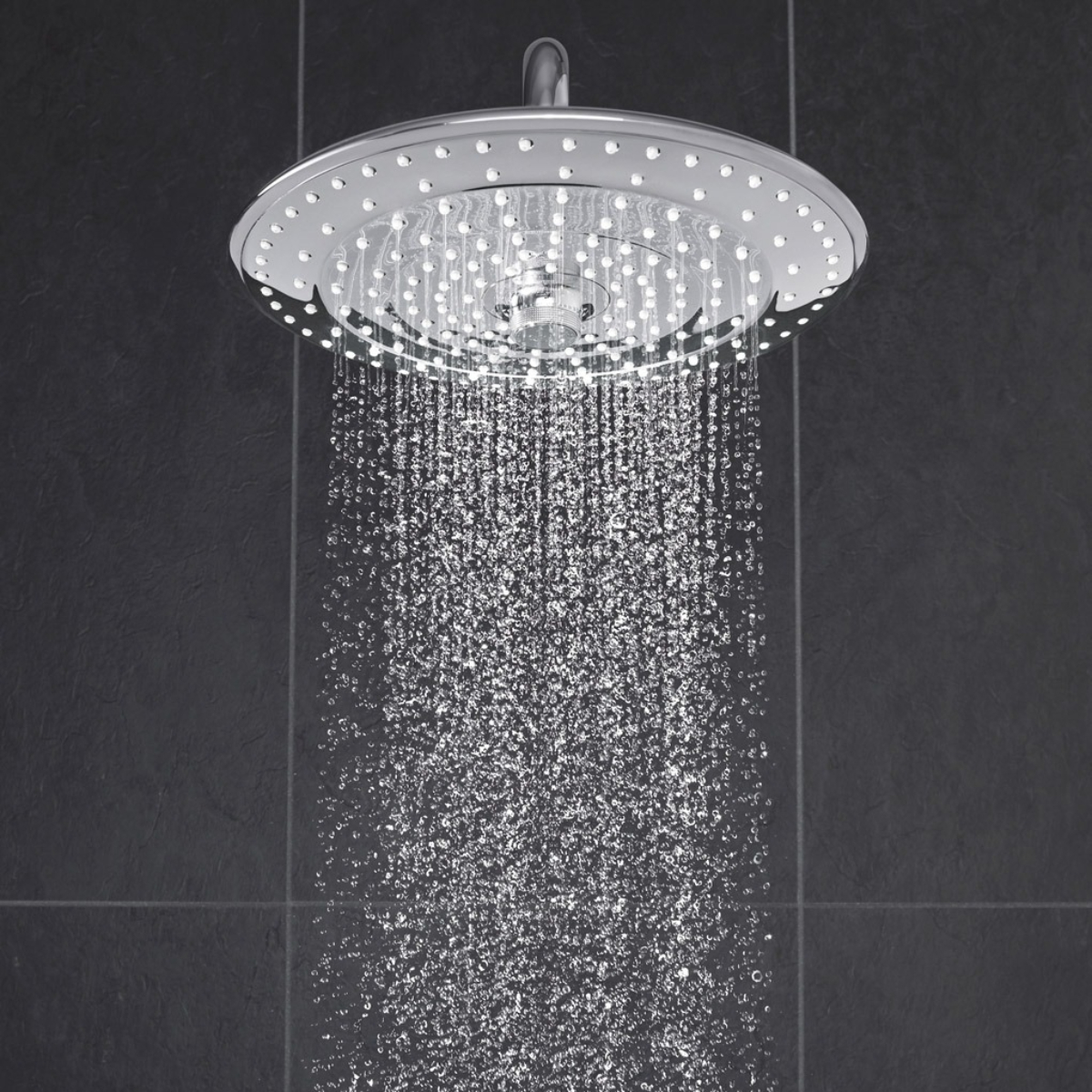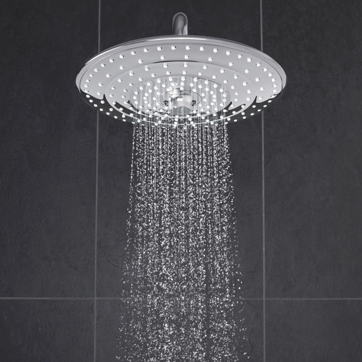 Эта душевая система с переключателем добавит дизайнерский стиль и наслаждение от принятия душа в любую современную ванную. Эта система отлично подойдет для обновления ванной комнаты, поскольку он совместим с существующими душевыми клапанами и может быть установлена в кратчайшие сроки. Сделанная в Германии и оснащенная передовыми технологии GROHE. Технология GROHE EcoJoy ограничивает поток воды до 9,5 л/мин без ущерба для комфорта принятия душа, а технология GROHE DreamSpray гарантирует одинаковый поток воды из каждой душевой форсунки. В верхнем душе, диаметр которого 260 мм, есть три душевые зоны. Режим Jet - мощный и концентрированный, идеально подойдет для вымывания шампуня и восстанавливающего массажа шеи и головы. Режим SmartRain обширнее и подойдет для расслабляющего эффекта, а режим Rain использует все форсунки, чтобы создать роскошный поток воды и обволакивающего эффекта. Чтобы выбрать один из режимов, вам нужно всего лишь повернуть эргономичную кнопку на верхнем душе. Диапазон поворота душевого кронштейна составляет 180° для дополнительного комфорта, а его диаметром - 450 мм. Ручной душ диаметром 110 мм также имеет три режима струи: нежный Rain, водосберегающий SmartRain и мощный режим Massage и ручной душ Silverflex (1750 мм). Надежное хромовое покрытие, устойчивое к царапинам, GROHE StarLight сохранит свой блеск на долгие годы. Внутренний водный канал WaterGuide предотвратит нагревание поверхности душа. Душевая система GROHE Euphoria 260 с переключателем - совершенство принятия душа, которое заставит вас улыбнуться!Основные свойства продукта:в комплект входят:горизонтальный поворотный душевой кронштейн 450 ммпереключатель с верхнего на ручной душEuphoria 260 Верхний душ (26 457)3 вида струй:Rain, SmartRain, Jetс шаровым шарниромугол поворота ± 15°ручной душ Euphoria 110 Massage (27 239)3 вида струй:Rain, SmartRain, Massageрегулируется по высоте с помощью скользящего элементадушевой шланг 1750 мм (28 388 000)Silverflex Душевой шланг 800 ммдоступ воды к смесителю/подключению душевого шланга 800 мм через соединение с резьбой 1/2"GROHE EcoJoy ограничитель расхода воды 9,5 л/минGROHE DreamSpray превосходный поток водыGROHE StarLight хромированное покрытие поверхностиGROHE SprayDimmerSpeedClean система против известковых отложенийвнутренний охлаждающий канал для продолжительного срока службыTwistfree против перекручивания шлангасовместим с проточным водонагревателем только выше 18 кВ/ч, а также с накопительным водонагревателем (см. Техническую информацию)минимальный расход воды 7л/минминимальное давление 1,0 бар