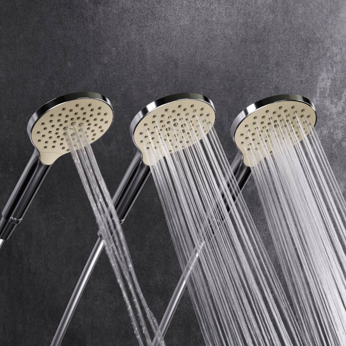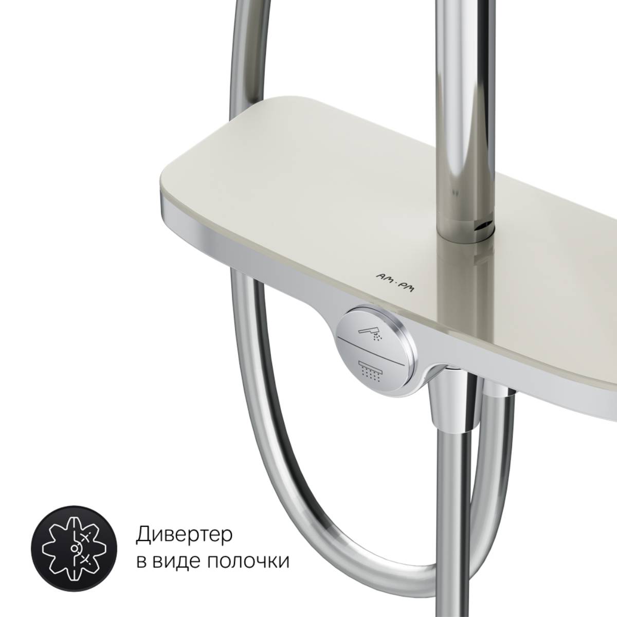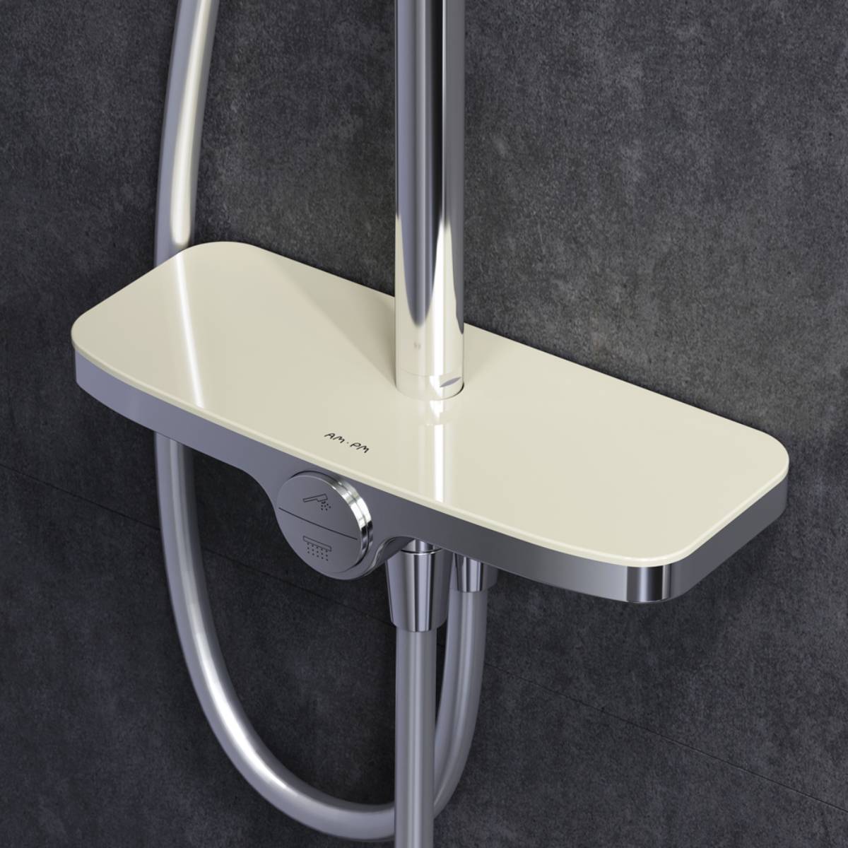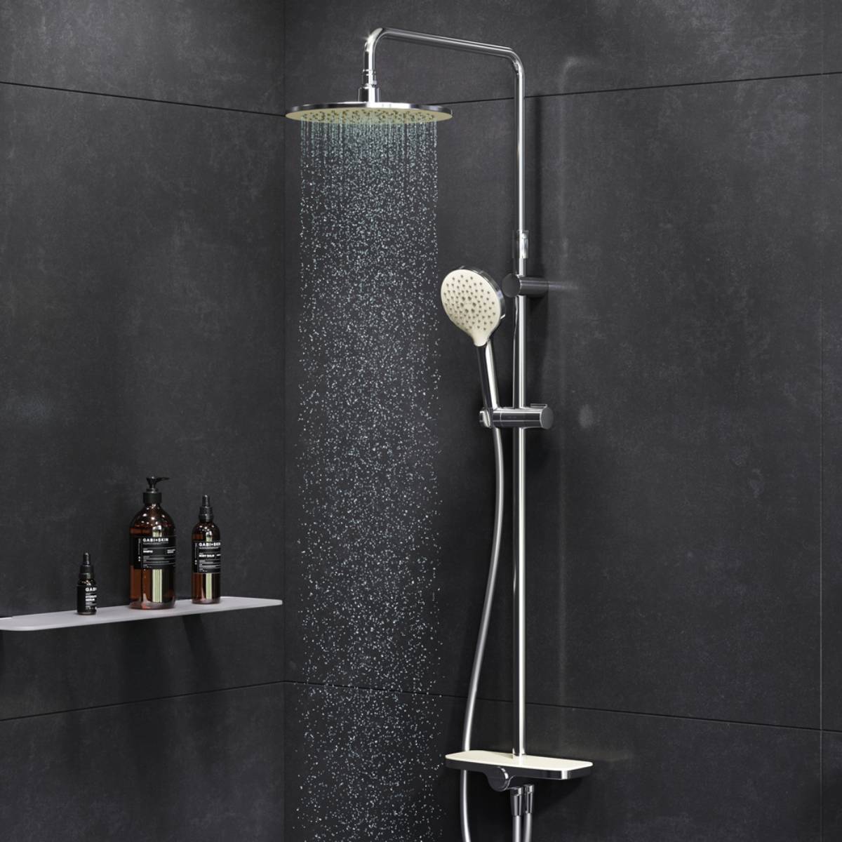 Тотальный дизайн в действии: все детали душевой системы – от пропорций ручного и верхнего душей до рисунка расположения форсунок на лейках.Премиальные размеры и продуманные детали: увеличенный диаметр душевых леек (верхний душ 254 мм и ручной душ 120 мм) позволит ощутить преимущества тропического душа, тогда как увеличенная длина шланга 1750 мм обеспечит свободу движений во время принятия душа. Телескопическая поворотная штанга регулируется по высоте в диапазоне от 1030 до 1460 мм, обеспечивая комфорт для людей любого роста, а шаровой шарнир в держателе верхнего душа позволяет регулировать угол его наклона.Нижнее крепление штанги выполнено в виде полочки, а переключатель верхний-ручной душ является ее продолжением. Нажав на него, вы можете менять источник потока воды от ручной лейки к верхнему душу.Характеристики:Покрытие: глянцевое.Материал: латунь, ABS-пластик, нержавеющая сталь.Количество режимов: 3 режима ручного душа: Spray, EnerJet, Spray + Massage.Размер ручного душа: 120 мм.Размер верхнего душа: 254 мм.Высота изделия: 1030-1460 мм.Глубина изделия: 569 мм.Ширина изделия: 254 мм.