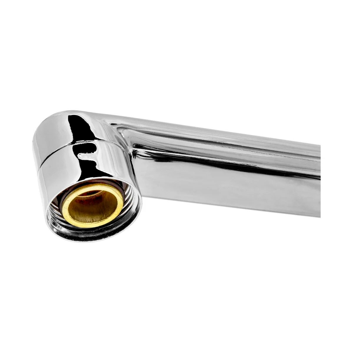 Основным предназначением излива является подача воды, поступающей из смесителя. L-образная хромированная деталь длиной 50 см универсальна в применении, имеет удобную конфигурацию и отлично подходит для ванной комнаты. Длинный излив обеспечит мощный поток воды и быстрое наполнение ванны. Универсальный излив для смесителя изготовлен из латуни и имеет хромированное покрытие. Идеально впишется в любой дизайн и может использоваться повсеместно. Устройство оснащено аэратором, проходя через которое, вода насыщается множеством пузырьков воздуха, позволяя формировать струю в мягкий и ровный поток, а также экономить расход воды.Характеристики:Тип: изливМатериал корпуса: стальДлина: 500 мм.