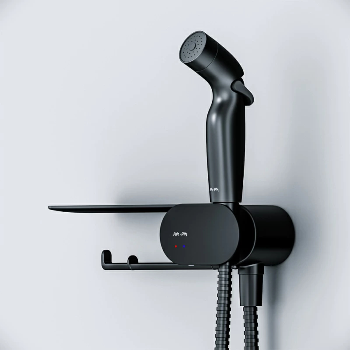 Самый широкий спектр возможностей с инновационным многофункциональным смесителем с гигиеническим душем от АМ.РМ! Смеситель оснащен прогрессивным картриджем, движение которого происходит в одной плоскости, делая управление максимально комфортным.Гигиенический душ зафиксирован непосредственно в самом смесителе, что экономит пространство и выглядит лаконично. Чтобы включить смеситель, достаньте гигиеническую лейку и поворотом ее держателя включите устройство. При нажатии на специальную кнопку на самой лейке начинается подача воды. Весь продукт представляет собой удобную полочку, на которой можно разместить все, что необходимо вам под рукой. На интегрированном держателе можно размещать туалетную бумагу, а на крючке - полотенце.Характеристики:Материал: латуньКомплектация: Душевой шланг 1500 мм, Лейка гигиенического душа.