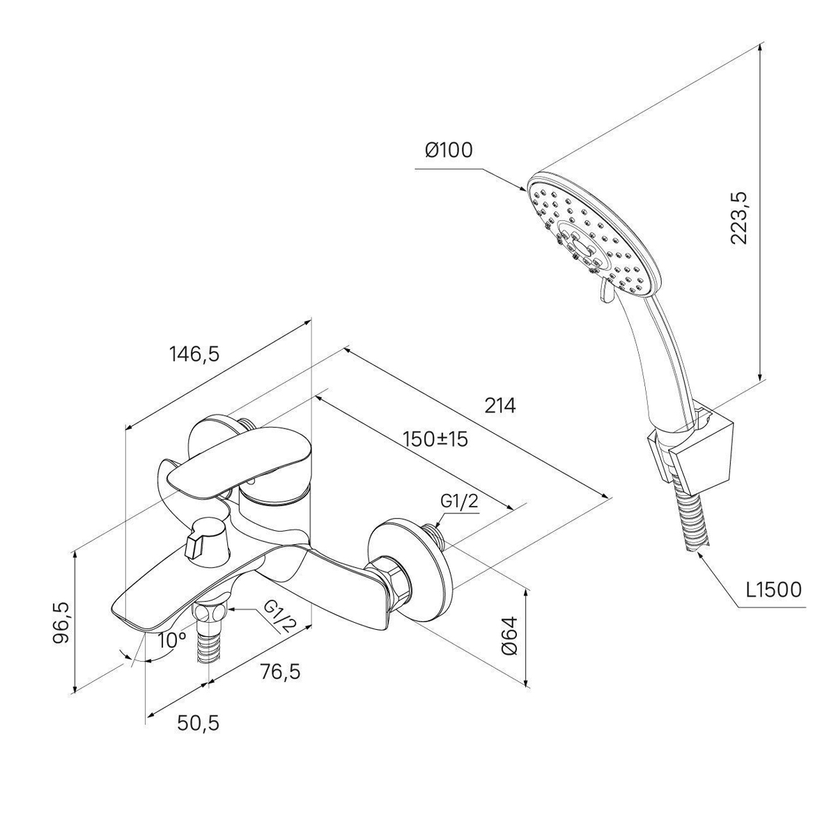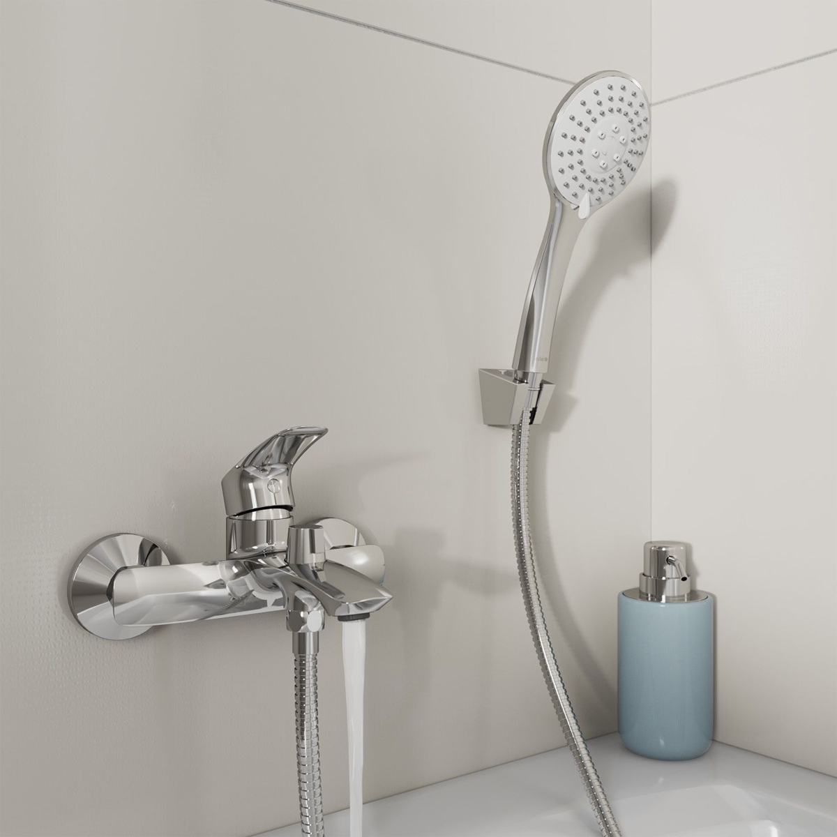 Смеситель для ванны Rora отличается универсальным характером: основной акцент в его дизайне приходится на плавные линии корпуса и классическое цветовое решение. Модель с коротким фиксированным изливом надежна и удобна в ежедневном использовании. Интенсивность и температура потока легко регулируются удобной ручкой смесителя. Поворотный дивертор работает при любом давлении воды, переключая поток воды на большую душевую лейку (ø 100 мм) или в комбинированном режиме. • Ручная лейка из прочного ABS-пластика, ПВХ-шланг (1,5 м) в оплетке из нержавеющей стали и крепеж идут в комплекте. • Качественный механизм смешивания воды смесителя Milardo® рассчитан на более чем 70 000 циклов работы – это не менее 15 лет эксплуатации семьей из трех человек. • Оптимальная толщина никель-хромового покрытия защищает смеситель от образования трещин и сколов, продлевает срок его службы.