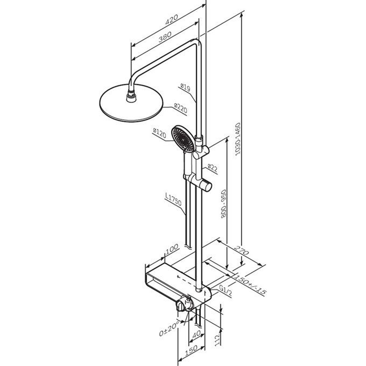 Новое прочтение культовой коллекции X-Joy. Еще больше инновационных решений для вашей ванной комнаты. Трендовые формы, технологичные материалы и продуманные детали, которые теперь доступны каждому. По самой привлекательной цене. Смеситель в виде полочки оборудован дополнительной нишей. Это идеальное решение для современной ванной комнаты, где самые необходимые вещи всегда находятся под рукой. Телескопическая штанга с диапазоном регулировки 400 мм сделает процесс принятия душа удобным для людей любого роста. А благодаря увеличенным размерам тропического (220 мм) и ручного (120 мм) душей вы ощутите все преимущества использования дизайнерского продукта.Душевая система X-Joy была создана для того, чтобы радовать вас каждый день.Характеристики :Держатель ручного душа: естьДержатели штанги: регулируемые по высотеДиаметр ручного душа: 120Диаметр верхнего душа: 220Длина душевого шланга: 1750Длина душевой штанги: 1030-1460Функции шланга: с защитой от перекручиванияИзлив: естьКартридж: AM.PM Soft Motion 35 ммМатериал: латунь, нержавеющая сталь, силикон, ABS пластикМыльница: нетПоворотный излив: нетРежимы душа: 3 режима ручного душа: Spray, EnerJet, Spray + MassageРучной душ: 120х120Тип управления: механическийВерхний душ: 220Высота изделия: 1470