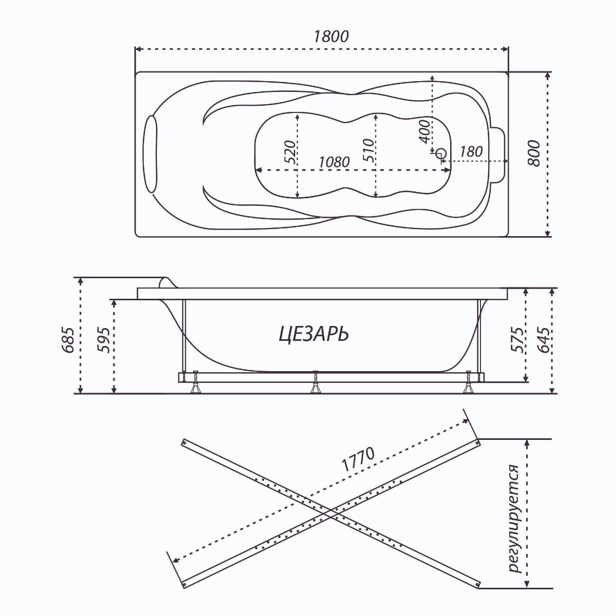 Представитель крупных размеров ванн – Тритон Цезарь 180х80. Особенной чертой этой модели служит ее уникальная компоновка, заключающая в себе не только большие габариты, но и отличный дизайн. Получился некий баланс всех самых важных характеристик для той ванны, которую хочется иметь у себя дома. Цезарь можно установить как в центре помещения, так и у стены, классическим способом.Независимо от вариантов установки, эта модель подарит по-настоящему положительные эмоции, и не только визуально. В любом случае, она точно не разочарует вас.Материал: акрилКоличество человек: 1Форма: прямоугольнаяОбъем: 240 лРазмеры (ДхШхВ): 180х80х64.50 смКомплектация: ванна, каркас, ножкиВнимание! Экран в комплект не входит. Можно приобрести пройдя по ссылке Экран Triton Цезарь/Лагуна