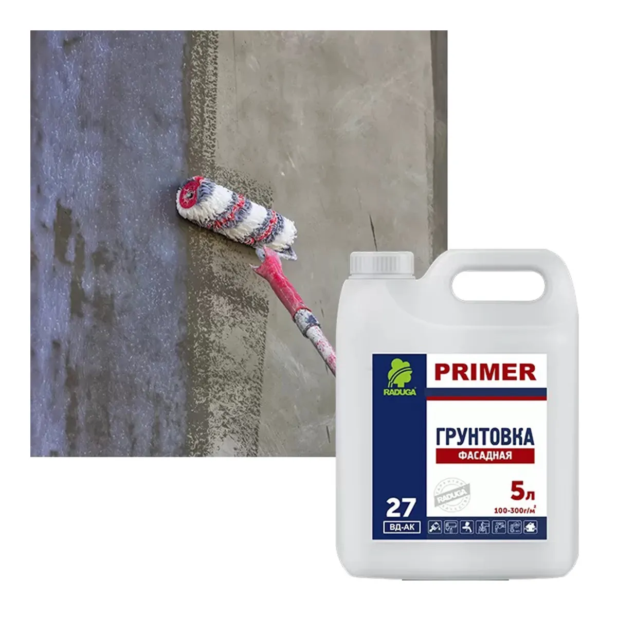 Укрепляющая грунтовка "РАДУГА-27" - укрепляющая акриловая грунтовка предназначена для укрепления даже слабых и осыпающихся поверхностей. Грунтовка "РАДУГА-27" глубоко проникает в обрабатываемую поверхность и заполняет поры поверхности, обеспечивая экономию расхода следующего слоя до 30%. Грунтовка повышает адгезию (сцепление) следующего слоя к основанию. Благодаря "РАДУГА-27" следующий слой надежно ляжет без трещин и отслаиваний. Продукт образует эластичное и прочное паропроницаемое прозрачное покрытие.Область примененияДля внутренних и наружных работ. Предназначена для укрепления поверхности. Основы для нанесения – бетон, штукатурка, шпатлевка, гипсоволокно, гипсокартон, ДСП, ДВП. Применяется также для обеспыливания оснований (например, полов перед укладкой линолеума, паркета).Преимущества• Отличная адгезия (сцепление)• Готовый к применению продукт• Качественная упаковка гарантирует сохранность при доставке и хранении• Продукция лакокрасочного завода "Радуга" пожаровзрывобезопасна и экологична, без запаха (не содержит вредных веществ и компонентов: растворителей, пластификаторов и т.п.)• Соответствует ГОСТ 52020-2007Подготовка поверхностиОчистите поверхность от мела и извести. Удалите осыпающиеся и слабые основания.ПрименениеПеред применением тщательно перемешайте. Наносите грунтовку на сухие и чистые поверхности кистью, валиком или краскопультом. Применять при температуре поверхности и окружающей среды не ниже ниже +10°С.Меры предосторожностиПри отделке внутренних помещений рекомендуем проветривать комнату. После окончания работ помещение также необходимо проветрить. При попадании продукта в глаза промойте большим количеством воды. Берегите от детей.Технические данныеСвязующее: Стирол-акриловая дисперсияРазбавитель: Вода Рабочие инструменты: Кисть, валик, краскопультВремя высыхания на отлипание: 1 часВремя до нанесения следующего слоя: 2 часаВремя полного высыхания: 2 часаРасход на один слой : 100 – 300 мл / м²Срок и условия хранения 1 год при температуре от +5 °С до 40°С в плотно закрытой таре вдали от источников излучения, нагревательных и осветительных приборов