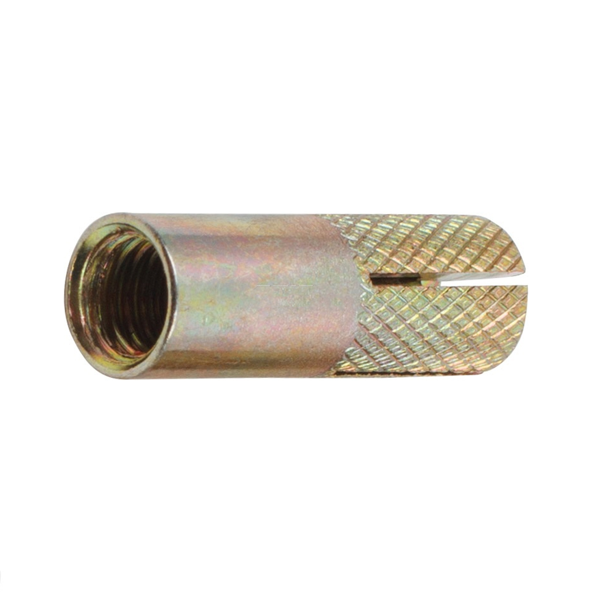 Анкер забиваемый М6х8х25 мм STARFIX 4 штуки (SMM1-44201-4) выполнен из стали с цинковым покрытием. Используется при ответственном монтаже (при больших нагрузках), при креплении тяжеловесных конструкций, кабельных трасс, консолей, ворот и т.п. к полнотелому бетону, природному строительному камню, полнотелому кирпичу.Характеристики:Тип: забиваемыйДиаметр наружный: 8 ммДлина: 25 ммРазмер резьбы: М6Покрытие: желтый цинкДлина резьбы: 11 ммГлубина завинчивания: 6 - 11 ммРасчетное усилие на вырыв (бетон B20): 3 кН