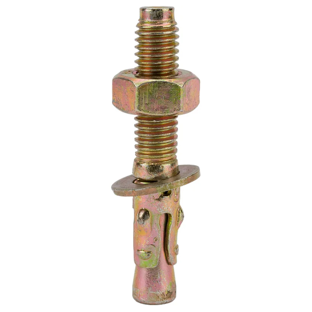 Клиновой анкер используется для крепления тяжеловесных конструкций, кабельных трасс, несущих консолей, перильных ограждений методом сквозного монтажа к полнотелому бетону, природному строительному камню, полнотелому кирпичу.Технические характеристики :Диаметр резьбы: М8Диаметр установки: 8 ммДлина анкера: 50 ммМатериал: стальПокрытие: желтопассивированныйТип фасовки: шт.Фасовка: 1 штГОСТ: нетDIN: нет