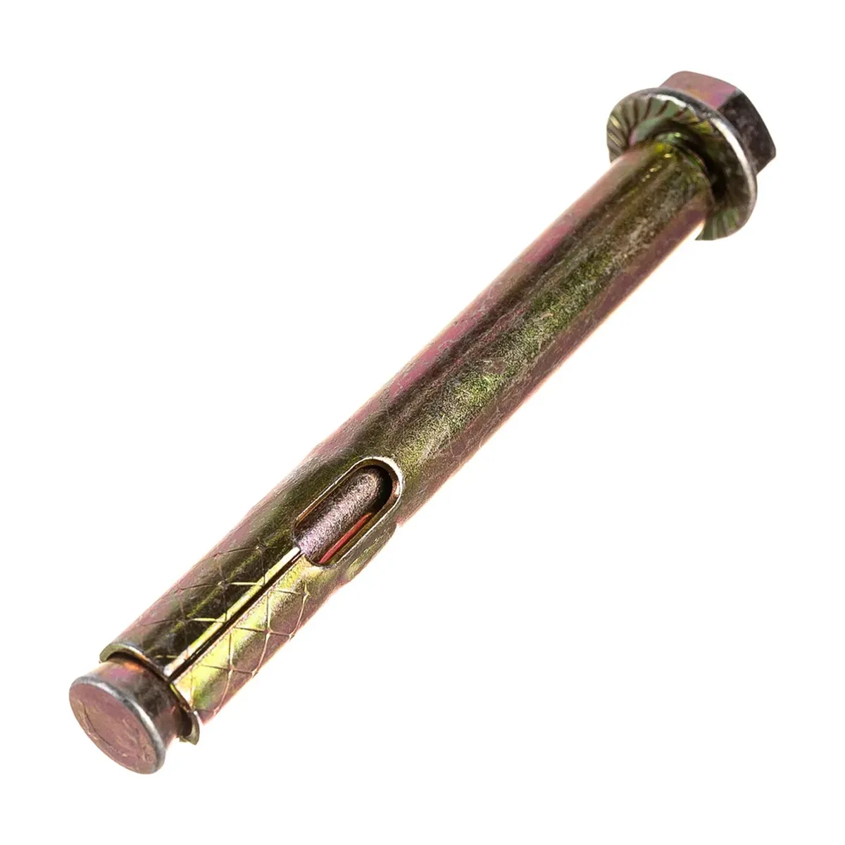 Анкер с гайкой подобного типа является аналогом болта с гайкой, однако здесь вместо стержня (шпильки) и гайки используется стандартный болт. При закручивании болта с помощью гаечного ключа конусообразный конец деформирует гильзу, тем самым заполняя стенки отверстия и закрепляя конструкцию в нем. Также может выпускаться в варианте для закручивания отверткой. Анкерный болт с гайкой STARFIX М6x8х65 мм SMP-60597-1 используется для крепления тяжеловесных конструкций, кабельных трасс, несущих консолей, перильных ограждений методом сквозного монтажа к полнотелому бетону, природному строительному камню, полнотелому кирпичу. Может применяться для крепления к тонким бетонным перегородкам.Технические характеристики болта STARFIX :Диаметр резьбы: М6Диаметр установки: 8 ммДлина анкера: 65 ммМатериал: стальПокрытие: желтопассивированный