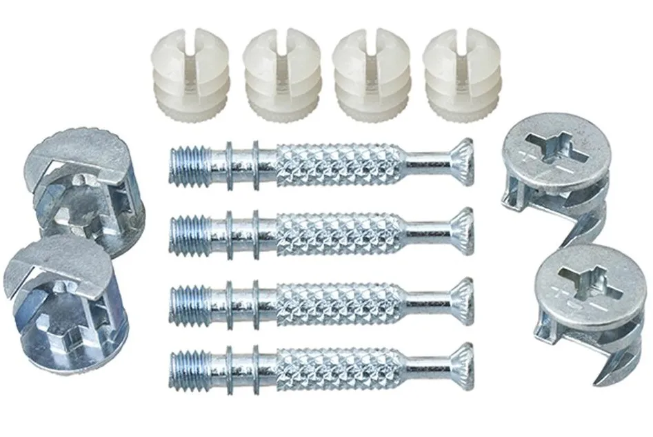 Применение: эксцентриковую стяжку используют в местах крепления деталей (Т- или Г-образных), соединение которых необходимо скрыть.Материал изготовления: сталь.Покрытие: белый цинк.В комплект входит: втулка-саморез для эксцентриковой стяжки 7х45 (4шт.), эксцентриковая стяжка для ДСП 16 мм (4 шт.), дюбель мебельный пластмассовый М6 (4 шт).Монтаж: в основании просверлить глухое отверстие диаметром 5 мм на длину резьбовой части штока. Вкрутить шток эксцентрика с помощью отвертки. Отверстия под эксцентрик высверлить специальной фрезой или сверлом "Форстнера" на расстоянии 34-35 мм от края присоединяемого торца детали. В торце детали просверлить отверстие диаметром 7 мм. Установить прикрепляемую деталь по месту: шток должен войти в отверстие, а шляпка должна показаться в отверстии для эксцентрика. Вставить эксцентрик таким образом, чтобы метка была напротив штока. С помощью отвертки повернуть эксцентрик в направлении стрелки, притянув деталь к основанию.