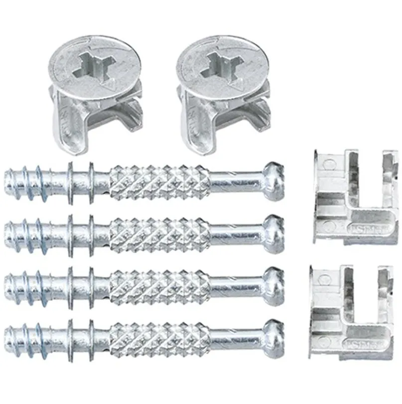 Применение: эксцентриковую стяжку используют в местах крепления деталей (Т- или Г-образных), соединение которых необходимо скрыть.Материал изготовления: сталь.Покрытие: белый цинк.В комплект входит: втулка-саморез для эксцентриковой стяжки 7 х 45 (4 шт.), эксцентриковая стяжка для ДСП 16 мм (4 шт.).Монтаж: в основании просверлить глухое отверстие диаметром 5 мм на длину резьбовой части штока. Вкрутить шток эксцентрика с помощью отвертки. Отверстия под эксцентрик высверлить специальной фрезой или сверлом "Форстнера" на расстоянии 34-35 мм от края присоединяемого торца детали. В торце детали просверлить отверстие диаметром 7 мм. Установить прикрепляемую деталь по месту: шток должен войти в отверстие, а шляпка должна показаться в отверстии для эксцентрика. Вставить эксцентрик таким образом, чтобы метка была напротив штока. С помощью отвертки повернуть эксцентрик в направлении стрелки, притянув деталь к основанию.