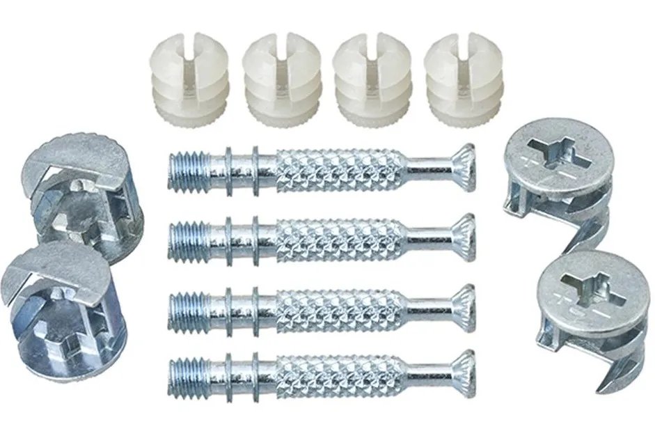 Применение: эксцентриковую стяжку используют в местах крепления деталей (Т- или Г-образных), соединение которых необходимо скрыть.Материал изготовления: сталь.Покрытие: белый цинк.В комплект входит: втулка-саморез для эксцентриковой стяжки 7х45 (4шт.), эксцентриковая стяжка для ДСП 18-20мм (4 шт.), дюбель мебельный пластмассовый М6 (4 шт).Монтаж: в основании просверлить глухое отверстие диаметром 5 мм на длину резьбовой части штока. Вкрутить шток эксцентрика с помощью отвертки. Отверстия под эксцентрик высверлить специальной фрезой или сверлом "Форстнера" на расстоянии 34-35 мм от края присоединяемого торца детали. В торце детали просверлить отверстие диаметром 7 мм. Установить прикрепляемую деталь по месту: шток должен войти в отверстие, а шляпка должна показаться в отверстии для эксцентрика. Вставить эксцентрик таким образом, чтобы метка была напротив штока. С помощью отвертки повернуть эксцентрик в направлении стрелки, притянув деталь к основанию.