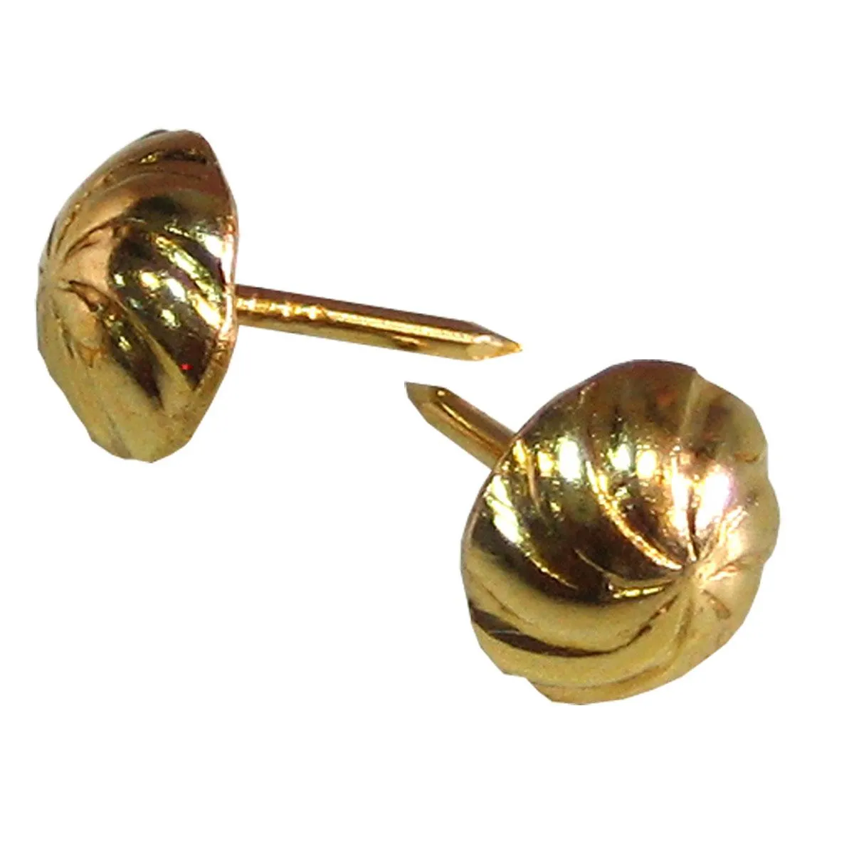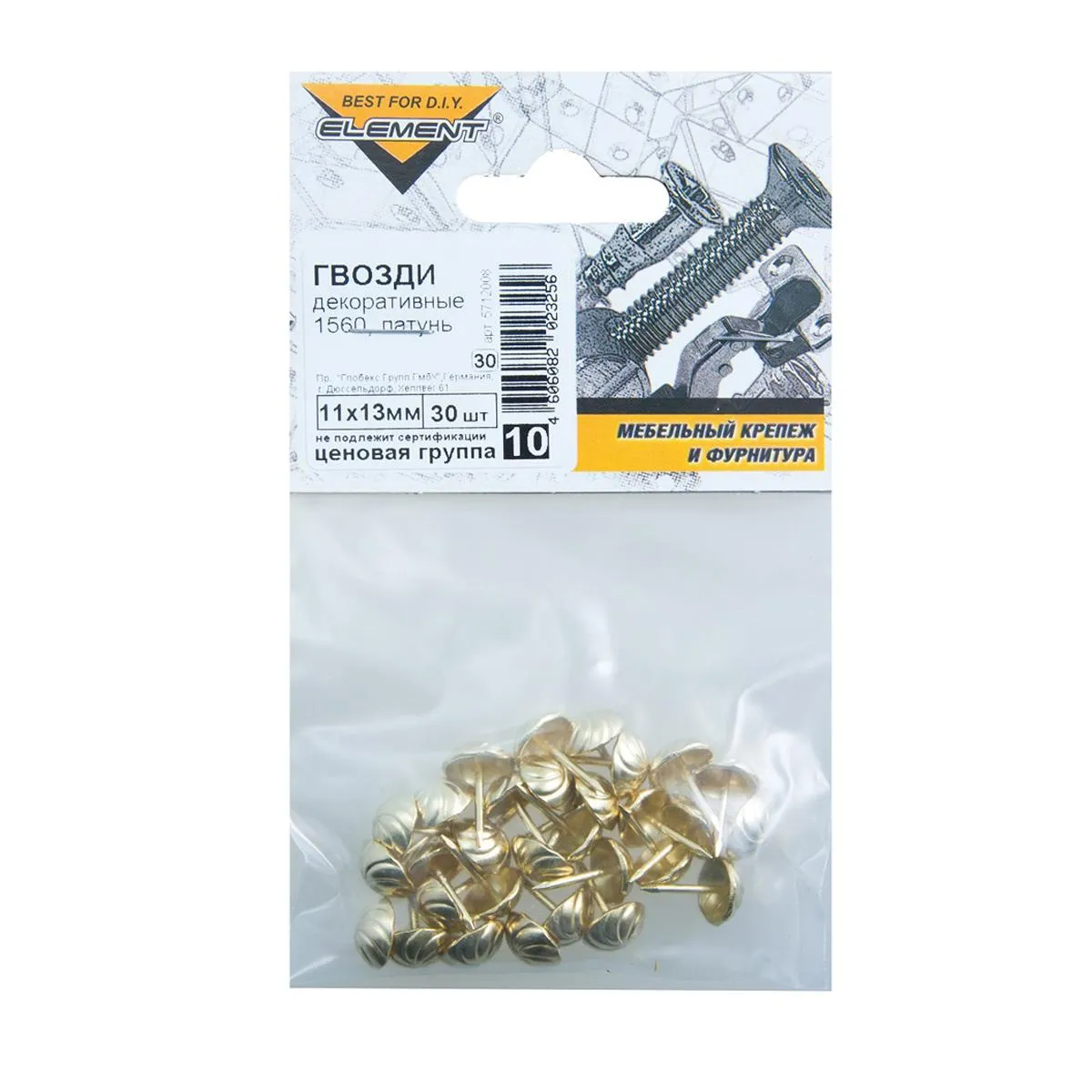 Гвозди декоративные предназначены для лицевого крепления мягких тканей на различных деревянных основаниях. Широко используется на мебельных фабриках и в быту. Как правило, декоративные гвозди имеют тонкий стержень и широкую шляпку, позволяющую удерживать ткань. Рекомендуется забивать декоративные гвозди деревянным молотком или киянкой, чтобы в случае промаха не повредить обивочный материал.Внимание: цена указана за упаковку.