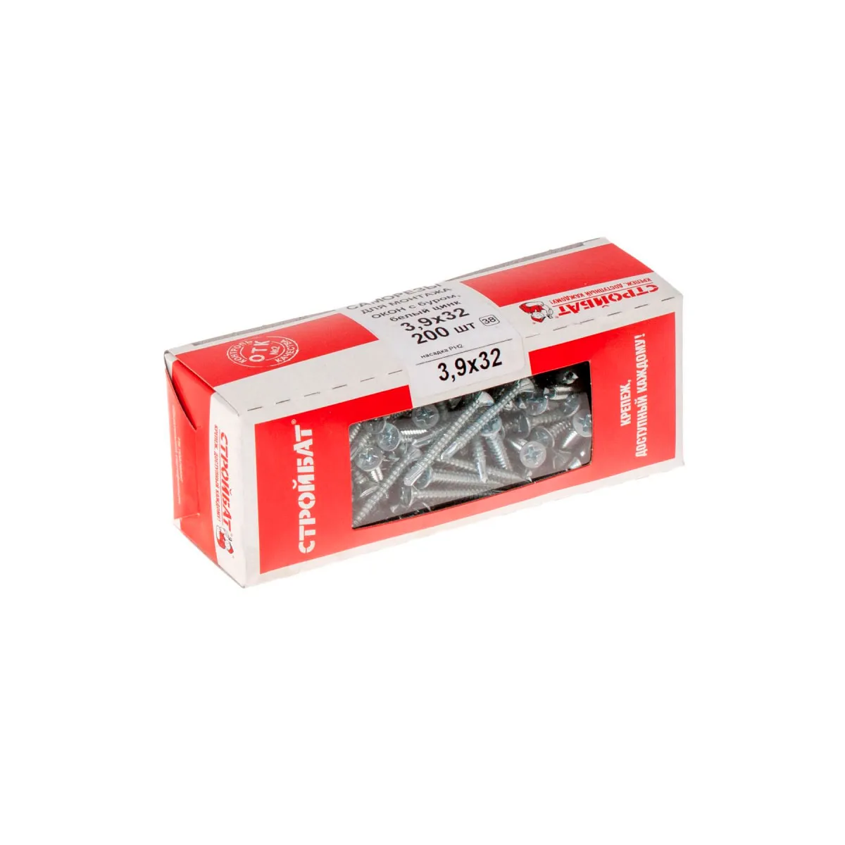 Технические характеристики саморезов Стройбат с буром белыйДиаметр: 3.9 ммДлина: 32 ммШлиц: Phillips (PH)Покрытие: оцинкованныйЦвет покрытия: белый цинкТип фасовки: шт.Фасовка: 200 штФорма головки: потайнаяНаличие пресс-шайбы: нетРазмер шлица: PH2Материал: стальФасовка: 0.415 кг