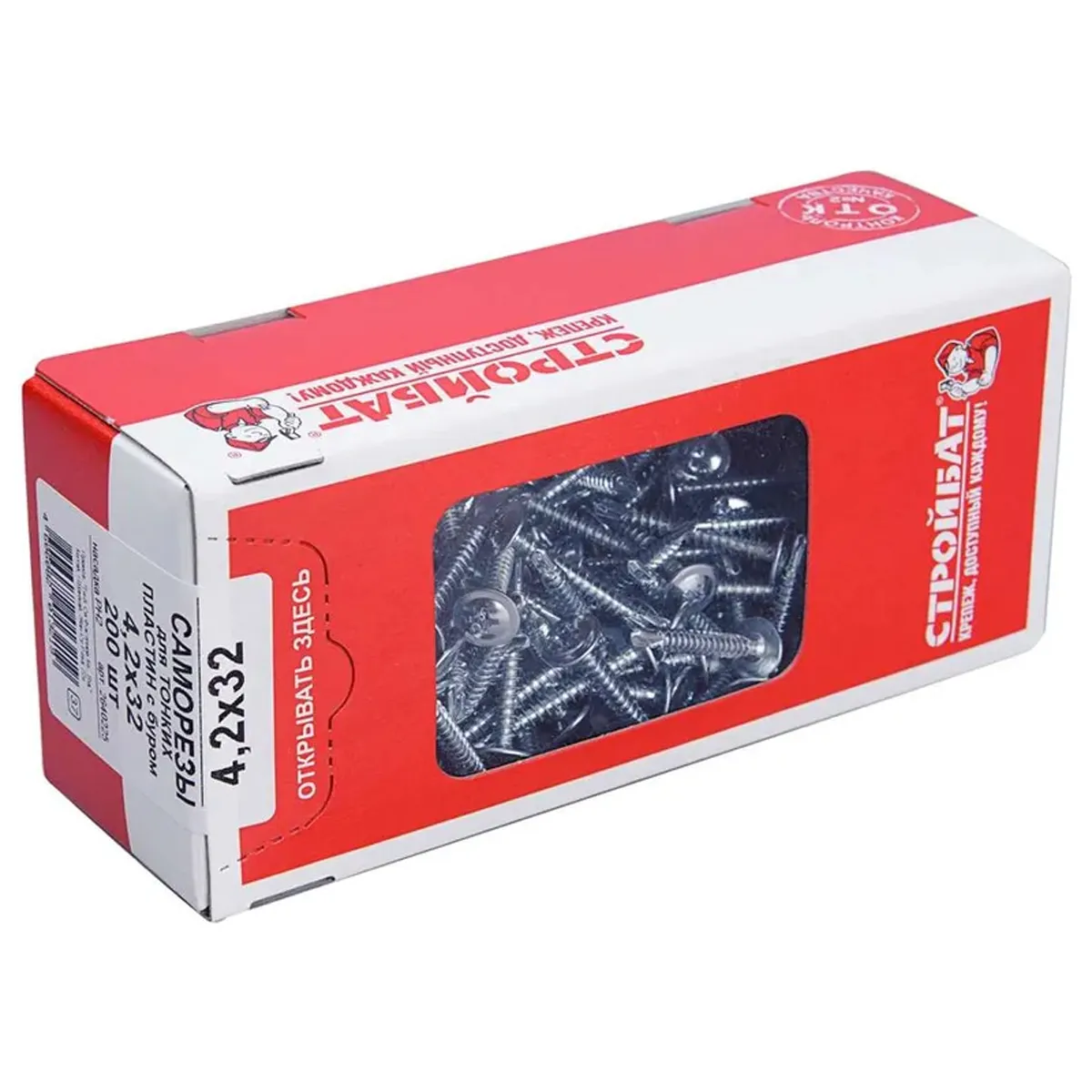 Саморезы для тонких пластин Стройбат белый цинк 4.2 x 32мм 200шт. 005111 - для крепления металлических листов толщиной до 2мм без предварительного сверления к металлическому основанию. Пресс-шайба плотно прижимает листовой материал к основанию, придавая всему соединению прочность и надежность. Характеристики : Бренд: СтройбатВес брутто: 0.5 кгДиаметр резьбы: 4.2 ммДлина: 32 ммКоличество: 200 шт.Тип наконечника: острыйЦвет: белыйТип головки: полусферическаяПокрытие: оцинкованныйНазначение: металлМатериал: стальНаличие пресс-шайбы: да