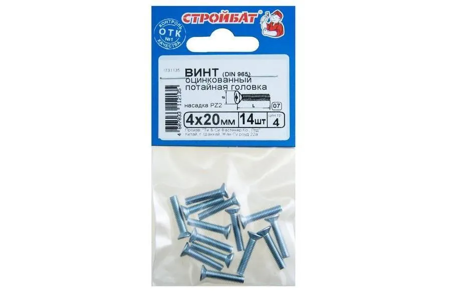 Винт оцинк.пот. DIN 965 М 4х20 (14шт)