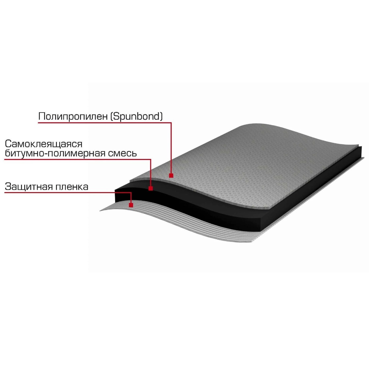 Рулонный самоклеящийся безосновный битумно-полимерный материал для гидроизоляции межэтажных перекрытий внутренних помещений.Верхнее покрытие материала – нетканый полипропилен Spunbond обеспечивает отличную адгезию с плиточным клеем или защитной стяжкой. С нижней стороны самоклеящийся, модифицированный СБС полимерами, битумный слой защищен силиконизированной пленкой, которая легко снимается при монтаже материала.Материал создан специально для частного домостроения, может быть смонтирован самостоятельно без применения сложного технического оборудования и наличия специальных технических навыков.Удобный размер рулона: длина 10,7 м, ширина 70 см.Вес рулона – 11,25 кг. Толщина материала – 1,5 мм.Срок службы материала более 45 лет.Преимущества:Самоклеящийся нижний слой = быстрый монтажУдобный размер рулонаНе требуется дополнительное оборудованиеВозможна укладка на горючие основанияВозможна укладка плитки на гидроизоляцию, без применения защитной стяжкиСрок службы более 45 летСвойства:Уникальный верхний слой Spunbond, защищающий самоклеящийся битумно-полимерный слой от механических повреждений. Укладка плитки может происходить непосредственно на материал без применения защитной стяжки, что существенно сокращает общее время монтажа.ХарактеристикиГибкость при пониженных температурах на брусе R=15 мм °С не выше -15Водонепроницаемость при давлении не менее 0,06 МПа - абсолютнаяТеплостойкость °С не менее 85Относительное удлинение % не менее 60Прочность сцепления: с бетоном с металлом МПа не менее 0,2Тип защитного покрытия: нетканый полипропилен, силиконизированная съемная пленкаДлина, м: 10,7Ширина, мм: 700Толщина, мм: 1,5