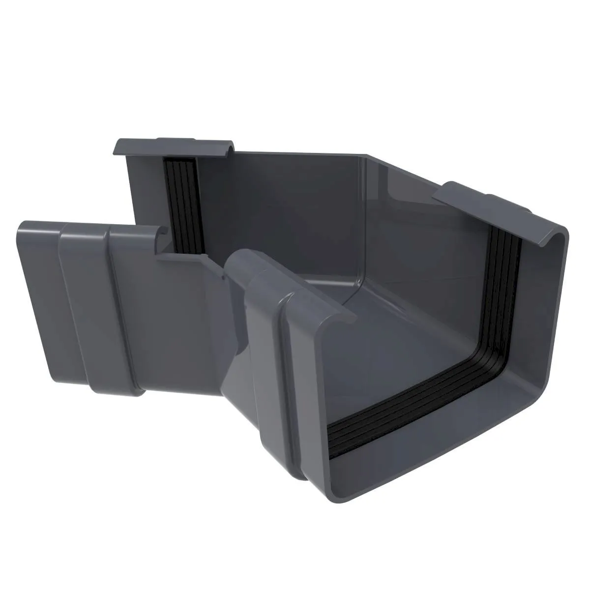 Угол квадратного желоба универсальный 135°. Для плотного соединения квадратных желобов под углом 135 градусов. Универсален: можно использовать во внутренних и внешних углах кровли.Материал: ПВХ