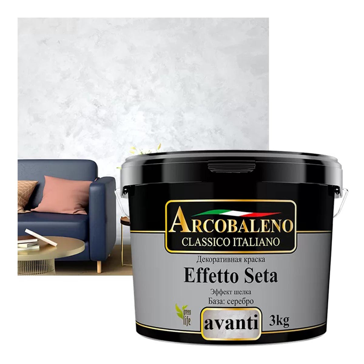 Барокко или индастриал? Безупречное бесшовное покрытие с мягкими переливами перламутра для интерьера в любом стиле создаст Effetto Seta Avanti. С декоративной краской легко реализовать многочисленные дизайнерские идеи и подчеркнуть индивидуальность вашего дома. Мягкий и гладкий эффект благородного шелкаПерламутровые пигменты создают игру света и оттенковВысокая механическая прочность и долговечностьВыдерживает влажную уборку с применением моющих средствПродукт позволяет работать крупными мазкамиБазы: Oro Bianco - белое золото, AVANTI серебро, серебро, золотоДанный продукт может иметь разнооттеночность в связи с тем, что содержит в рецептуре сырье природного происхождения. Во избежание разнооттеночности нанесенного материала рекомендуем приобретать данный продукт с ОДНОЙ ДАТЫ И ПАРТИИ выпуска.Преимущества. Пожаробезопасность; экологическая чистота; высокая механическая прочность и долговечность; паропроницаемость; неповторимый декоративный эффект; легкость нанесения.Назначение. Декоративная перламутровая краска для внутренней и наружней отделки. Применяется для финишной отделки в общественных и жилых помещениях. Предназначена для создания особых декоративных покрытий с мягким текстурным эффектом. Перламутровые пигменты в составе покрытия создают неповторимую игру света и оттенков, имитируют переливы благородного шелка.Расход: 0,1-0,15 кг/м² на 1 слой.Высыхание: 1-2 ч при t°С от +20 °С и влажности до 65%.Состав: Вода, перламутровый пигмент, акриловая дисперсия, специальные добавки.Хранение: Хранить и транспортировать в плотно закрытой таре при температуре не ниже +5⁰С.Тип: декоративная краскаУборка: ВлажнаяНазначение: Интерьеры